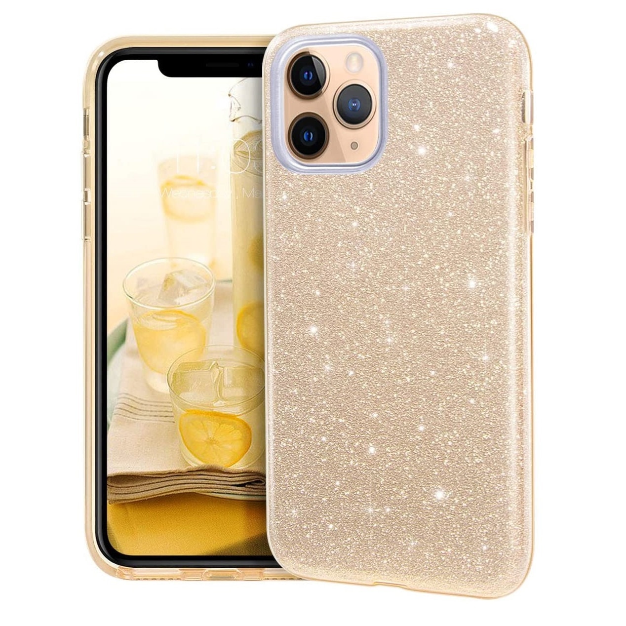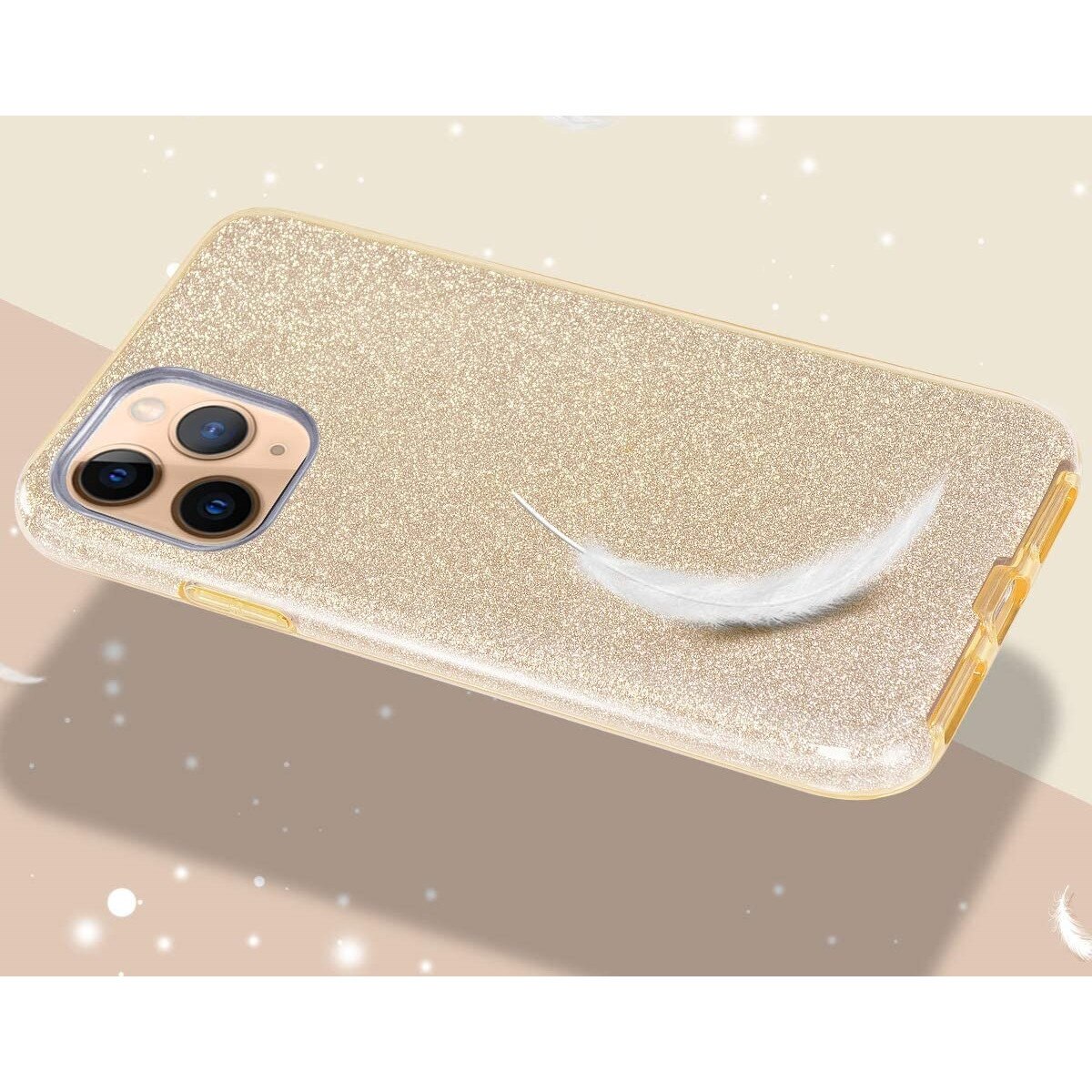 Husa protectie compatibila cu iPhone 11 Pro ultra slim din silicon, cu 3 straturi protective, Fashion, cu sclipici Glitter, Auriu