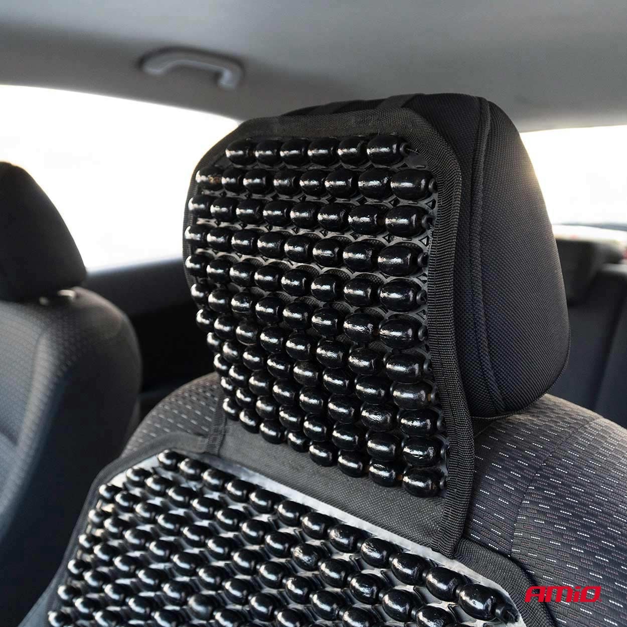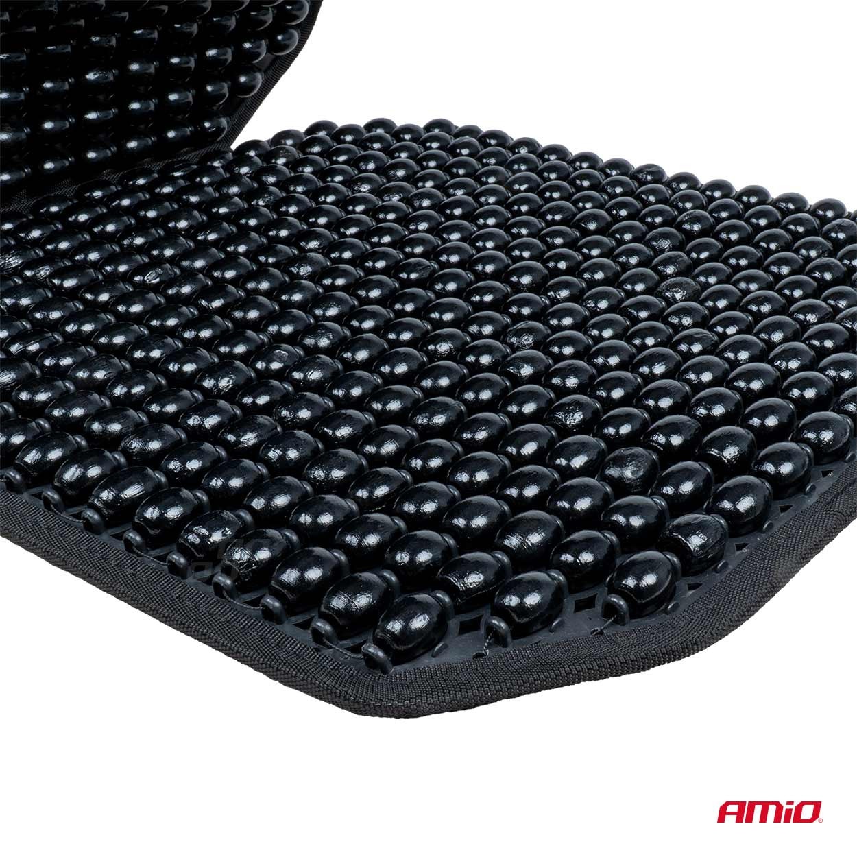 Husa scaun auto cu bile din bambus si perna lombar, 126 x 44 cm, negru