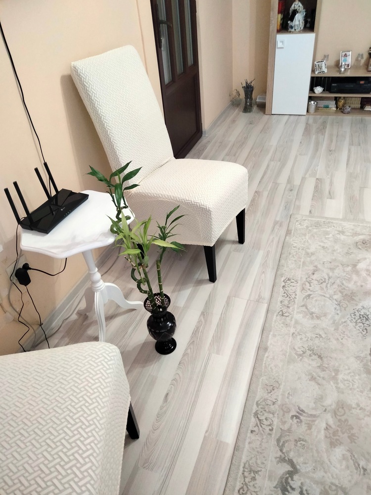 Husa Scaun, Ubieramy meble, Velur, Design Estetic, Elastica, Universala, Ideal Pentru Living, Dormitor, Bucatarie, Birou, Dimensiuni maxime ale spatarului 85 x 48 cm, Dimensiuni maxime ale sezutului 50 x 48 cm, Ecru