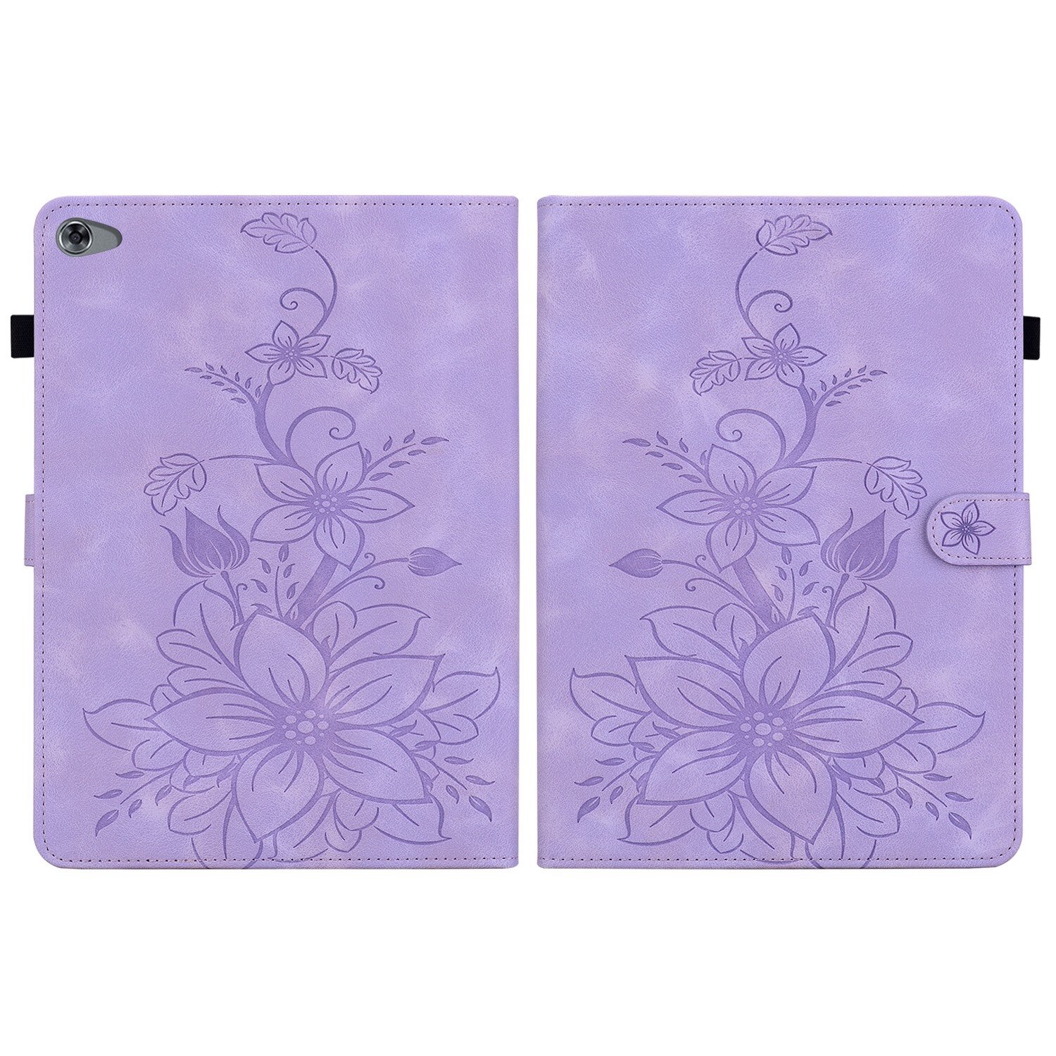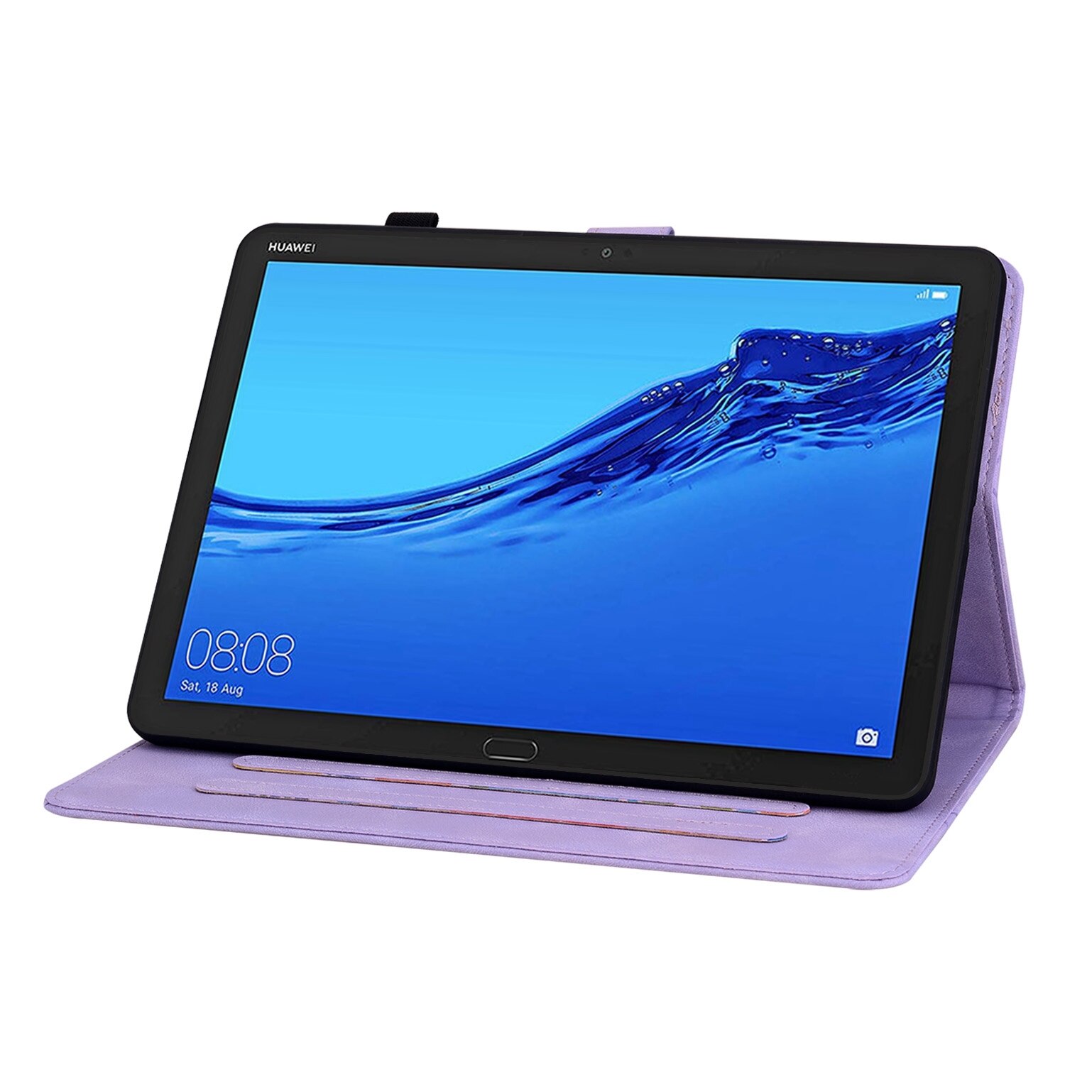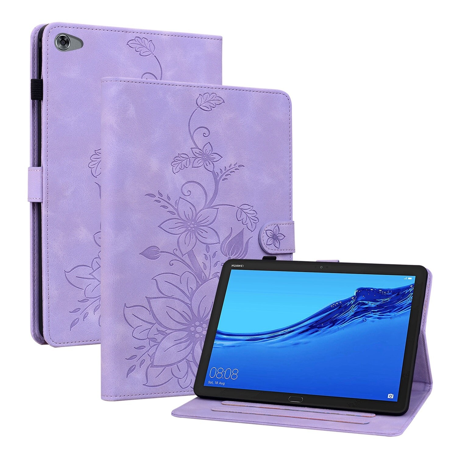 Husa tableta pentru Huawei MediaPad M5 Lite 10 / C5 10.1, din piele cu model floral, tip carte, cu suport, inchidere magnetica, violet
