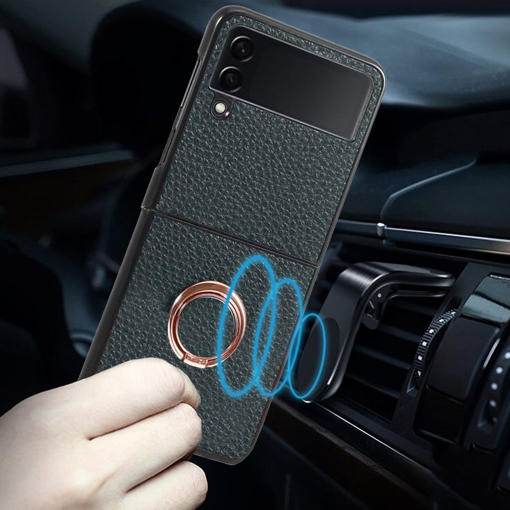 Husa telefon, ERBORD, Piele ecologica / TPU, Pentru Samsung Galaxy Z Flip 4 5G, Verde inchis
