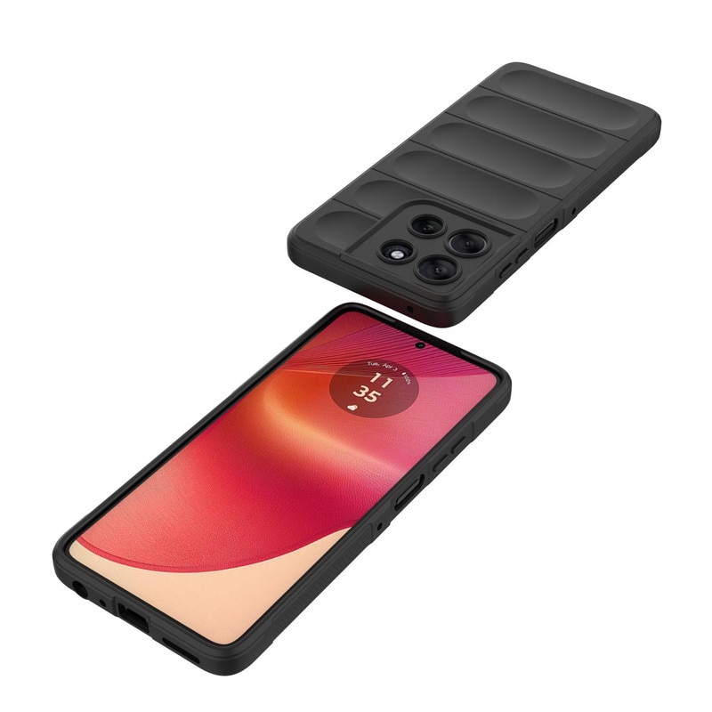 Husa telefon, pentru Motorola G86 5G, Heavy Duty 3D cu dungi senzoriale Soft Silicone Full Portection Rezistent la socuri, Negru intens