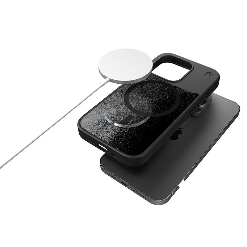 Husa telefon STM, compatibila cu MagSafe, poliicarbonat si TPU, tehnologie Focuscape, negru/gri, pentru iPhone 15 Pro