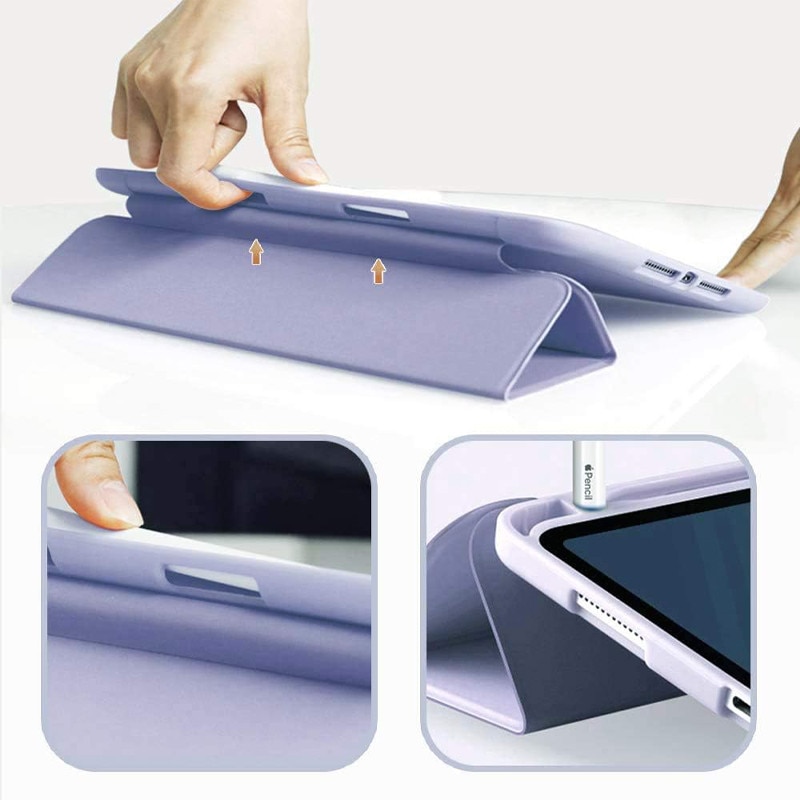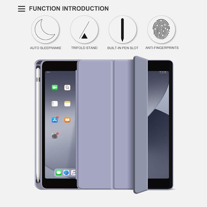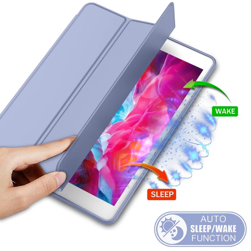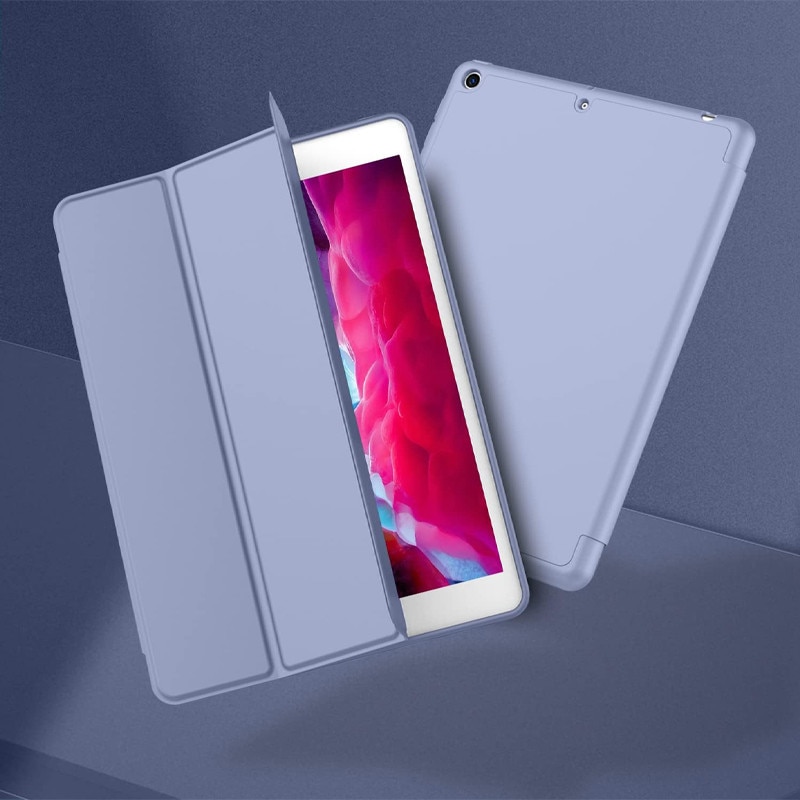 Husa tip Carte cu Suport Pix pentru Apple iPad 5/6, iPad 2017/2018, iPad Air 1/2, 9.7 inch, Protectie completa, Pliabila, Albastru Lavanda