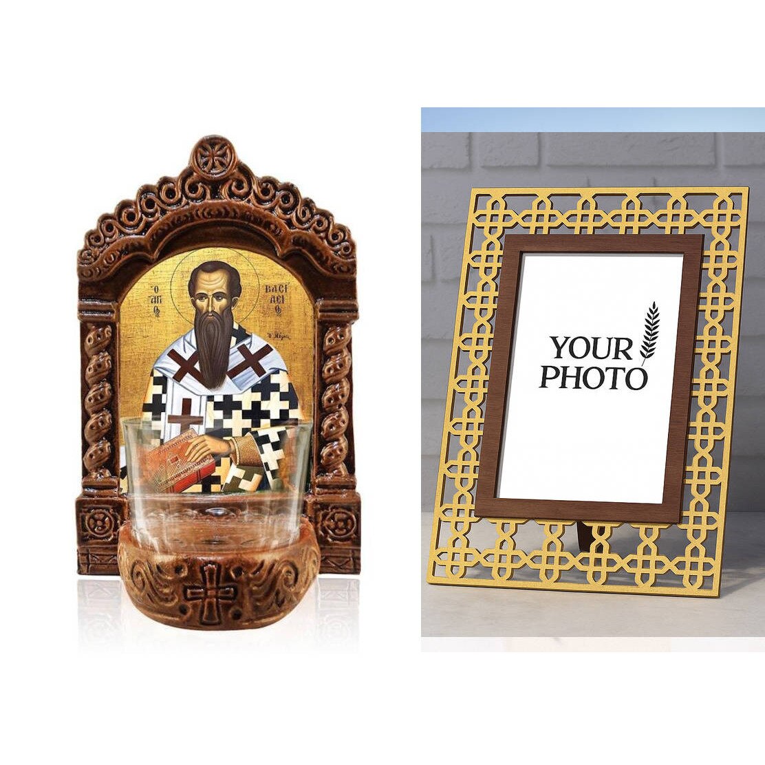 Icoana ceramica Agios Basileios, 20x13x11 cm, cu suport, realizata manual, made in Greece