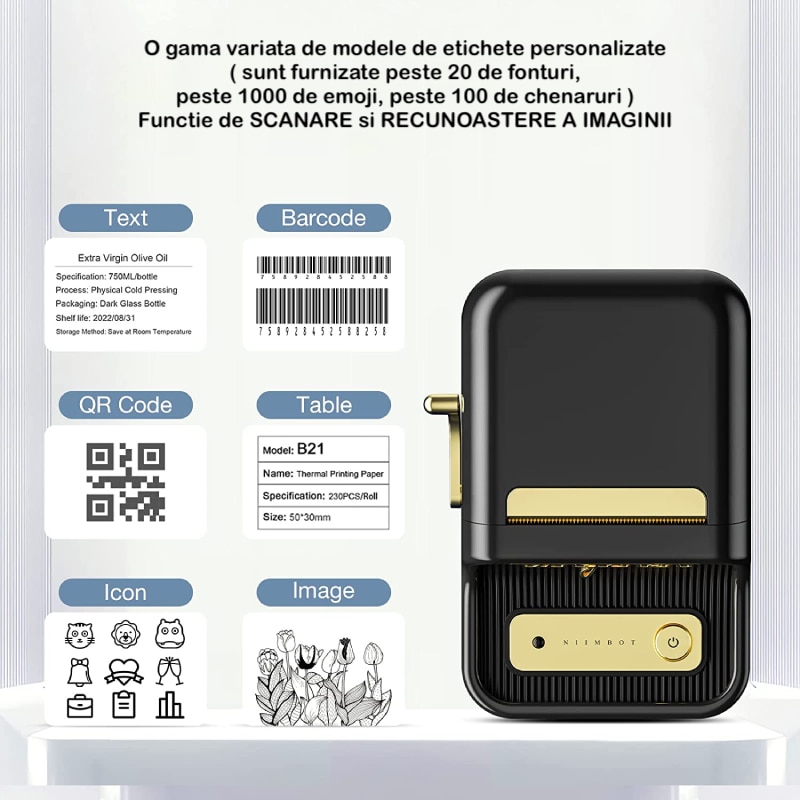 Imprimanta termica de etichete NIIMBOT B21 portabila pentru imbracaminte, adresa, afaceri, compatibila cu iOS si Android, negru