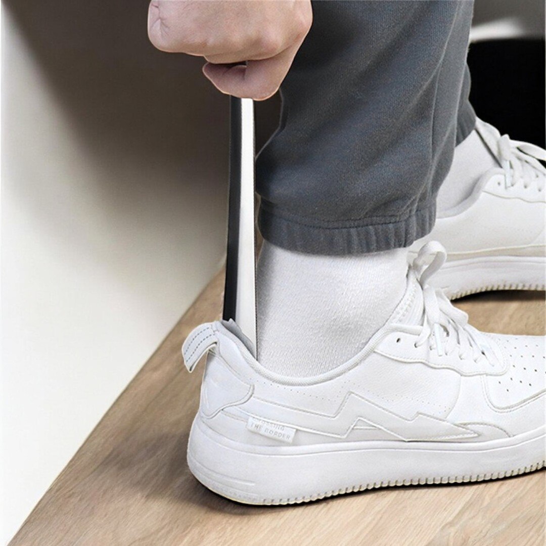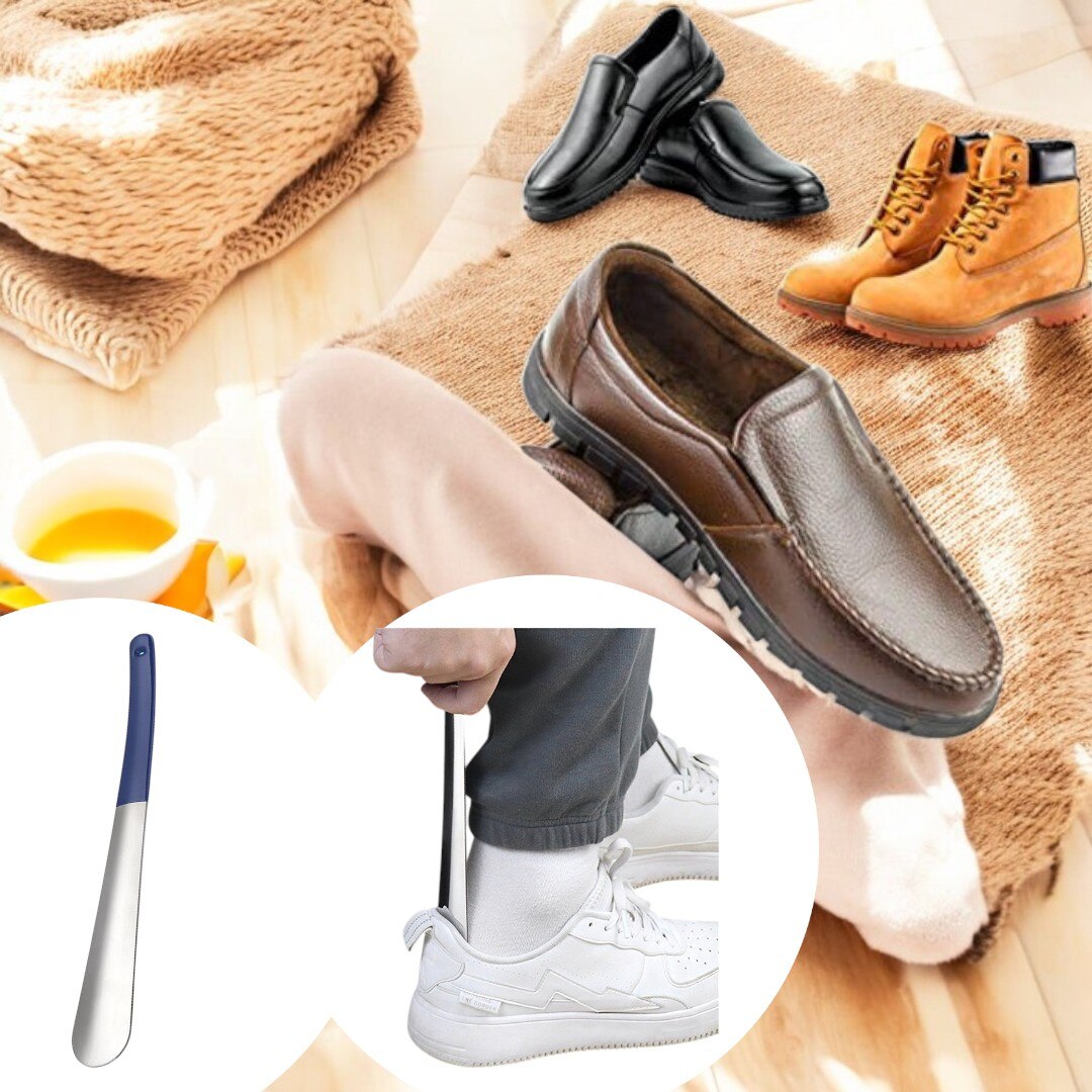 Incaltator pentru pantofi din otel inoxidabil cu maner lung de 30 cm, accesoriu practic si confortabil pentru uz casnic, culoare albastru