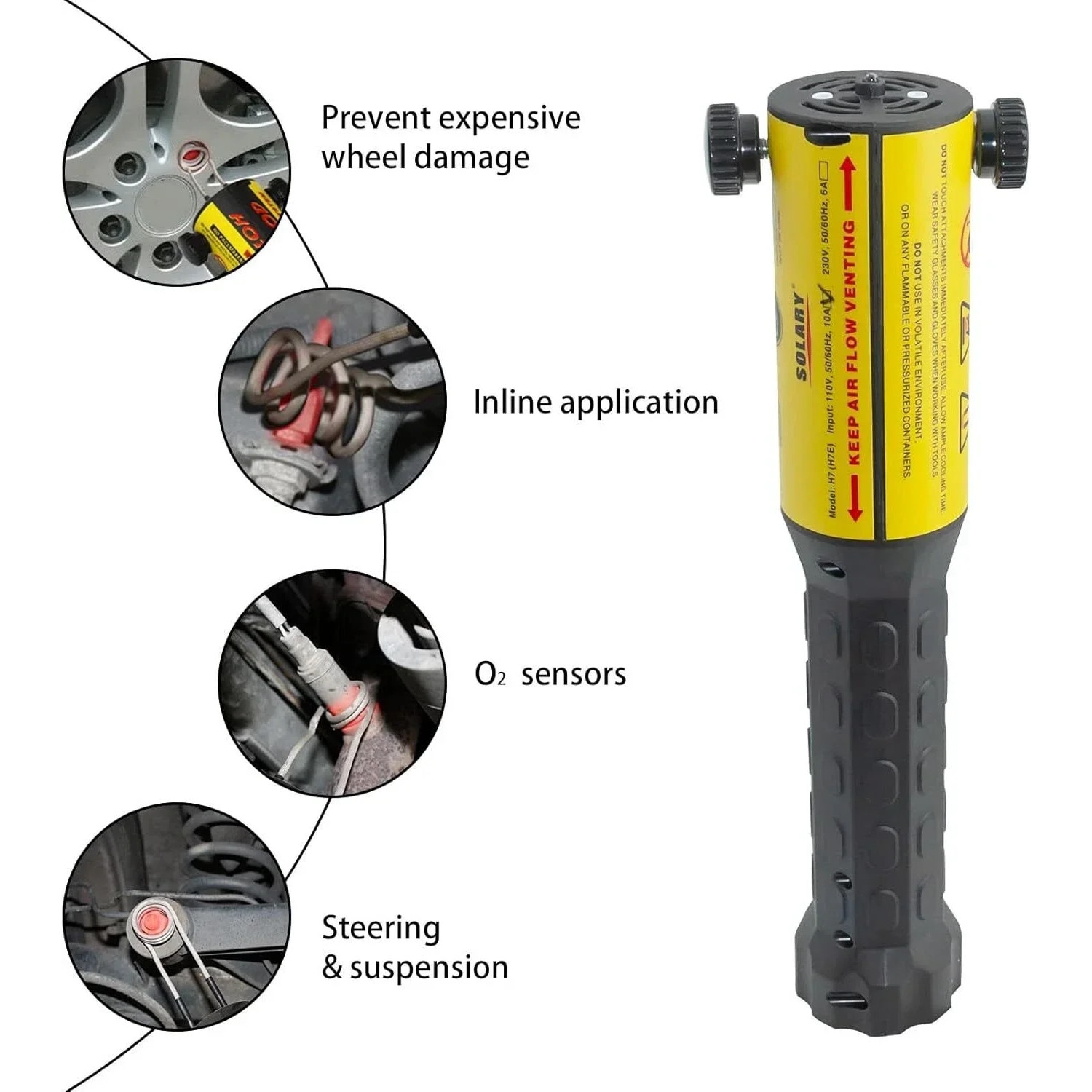 Acest incalzitor cu inductie magnetica de 1100 W ofera o solutie sigura, fara flacara si eficienta pentru slabirea suruburilor, piulitelor si componentelor metalice mici ruginite. Folosind inductia electromagnetica, incalzeste rapid piesele metalice la temperaturi ridicate fara a deteriora materialele din jur. Conceput pentru intretinerea auto si mecanica, asigura o incalzire precisa cu un consum minim de energie. Lumina LED incorporata permite o vizibilitate clara in spatiile de lucru intunecate, in timp ce cele 3 bobine de incalzire incluse accepta diverse dimensiuni si aplicatii ale suruburilor. Corpul sau durabil din ABS, bobinele din alama de 3 mm si ventilatorul de racire incorporat asigura performanta si siguranta de lunga durata in mediile solicitante de atelier.