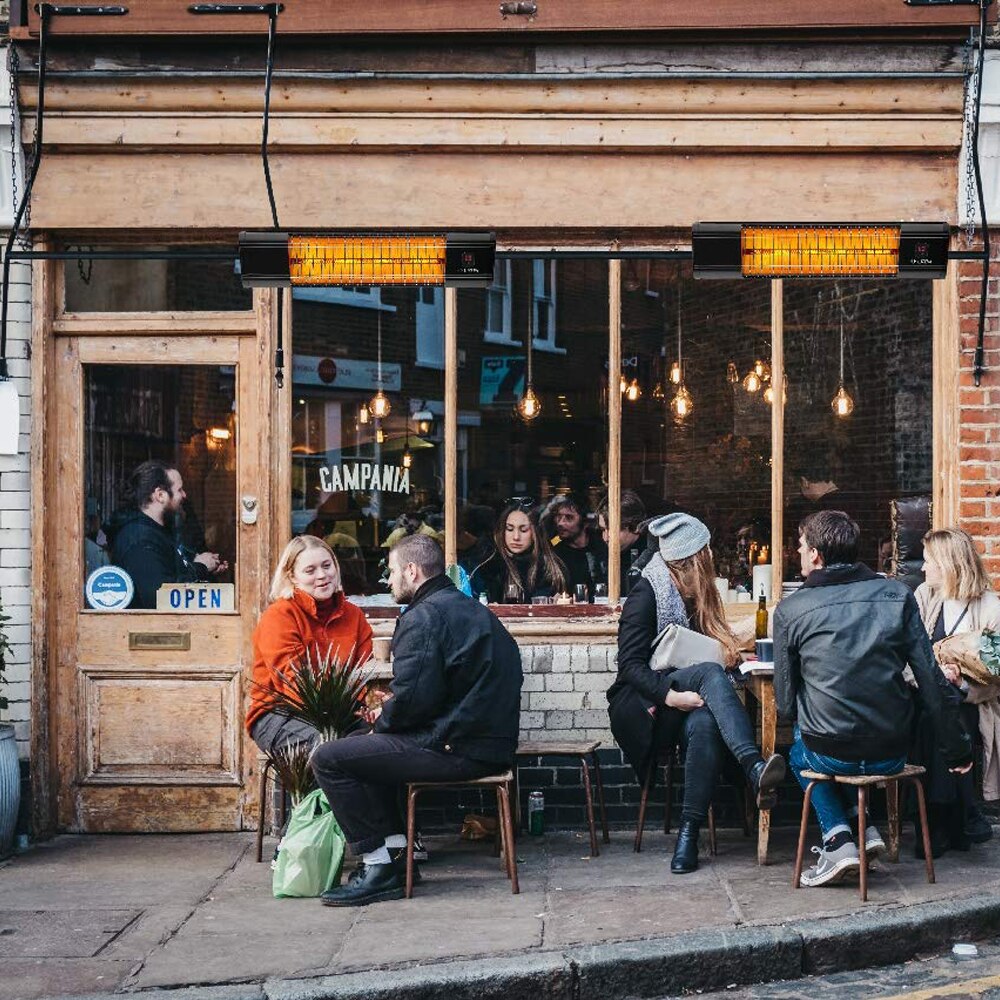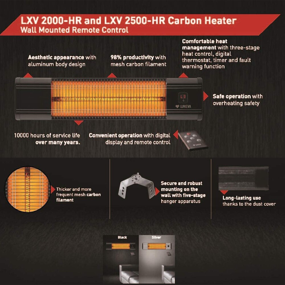 Incalzitor cu infrarosu pentru terase LUXEVA 2500 HRS, 3 trepte putere, IP55, termostat, temporizator, telecomanda, negru