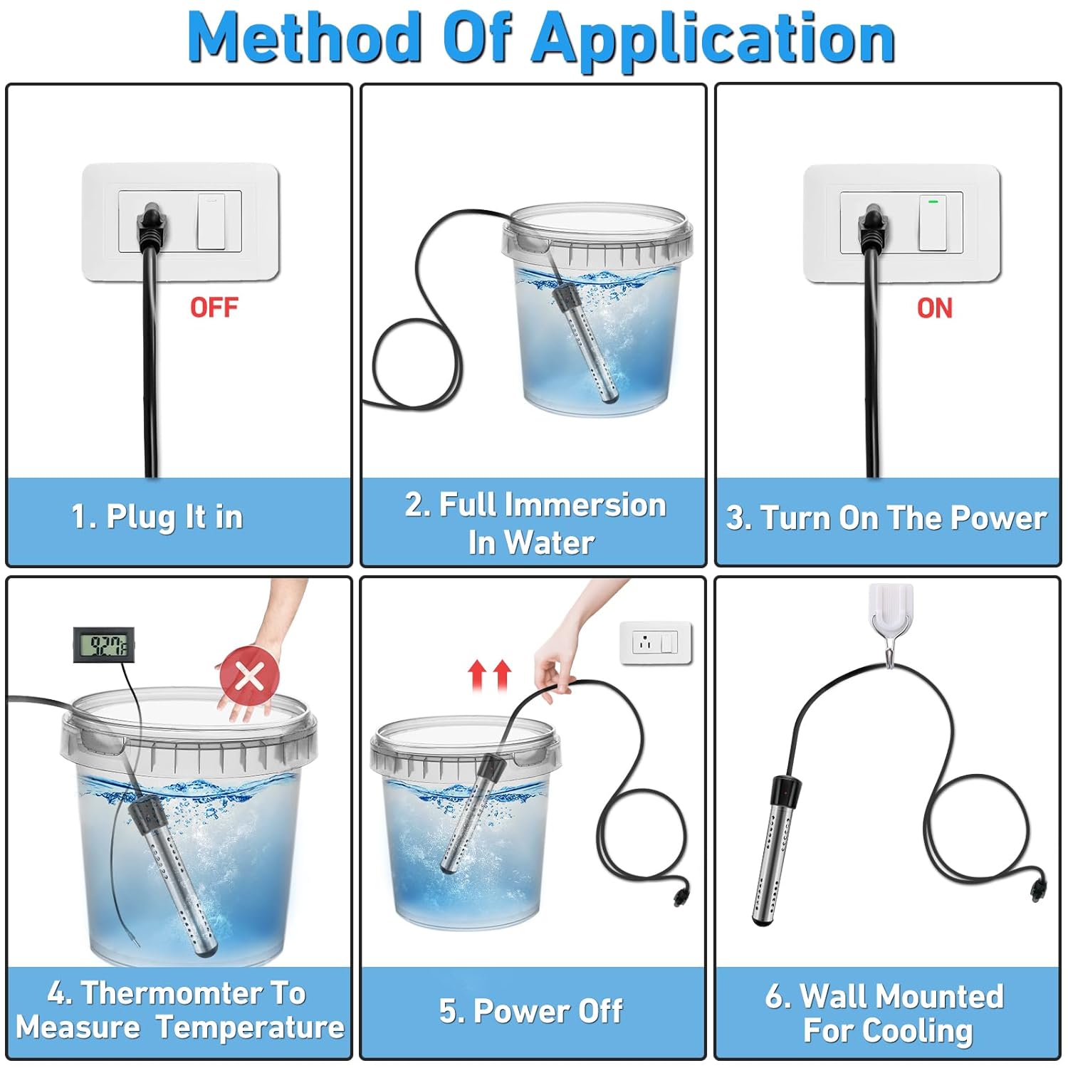 Pur si simplu adanciti incaltatorul de apa imersibil in apa, conectati - l la curent si apoi activati interupatorul. Asigurati - va ca incaltatorul este complet scufundat inainte de a conecta alimentarea. Evitati sa il utilizati continuu pentru mai mult de 3 ore. Nu conectati doi incaltatoare la acelasi priza pentru a preveni potentiale pericole de siguranta. Functionarea simpla il face accesibil pentru toti.
