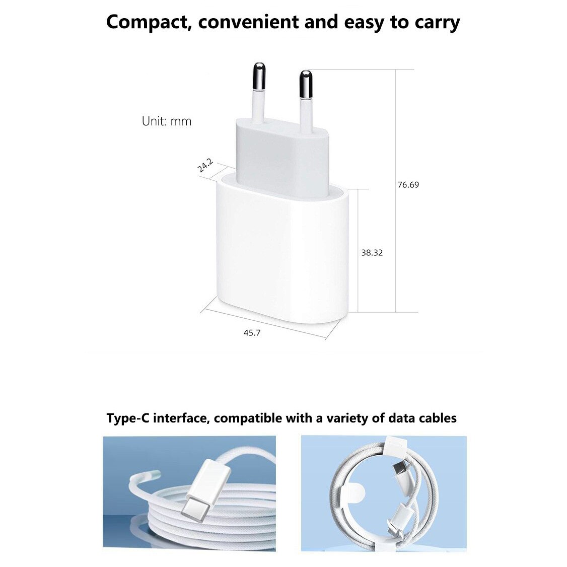 | Functii | Design compact Type-C Fast Charging Smart Charger Incarcare rapida 1 x Cablu Type-C 1 x Incarcator 20W USB-C |
