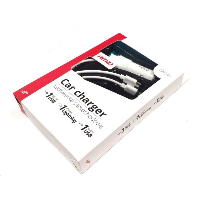 Incarcator auto, 2 cabluri, Iphone 5, microUsb, USB, 12/24V 01264 Amio