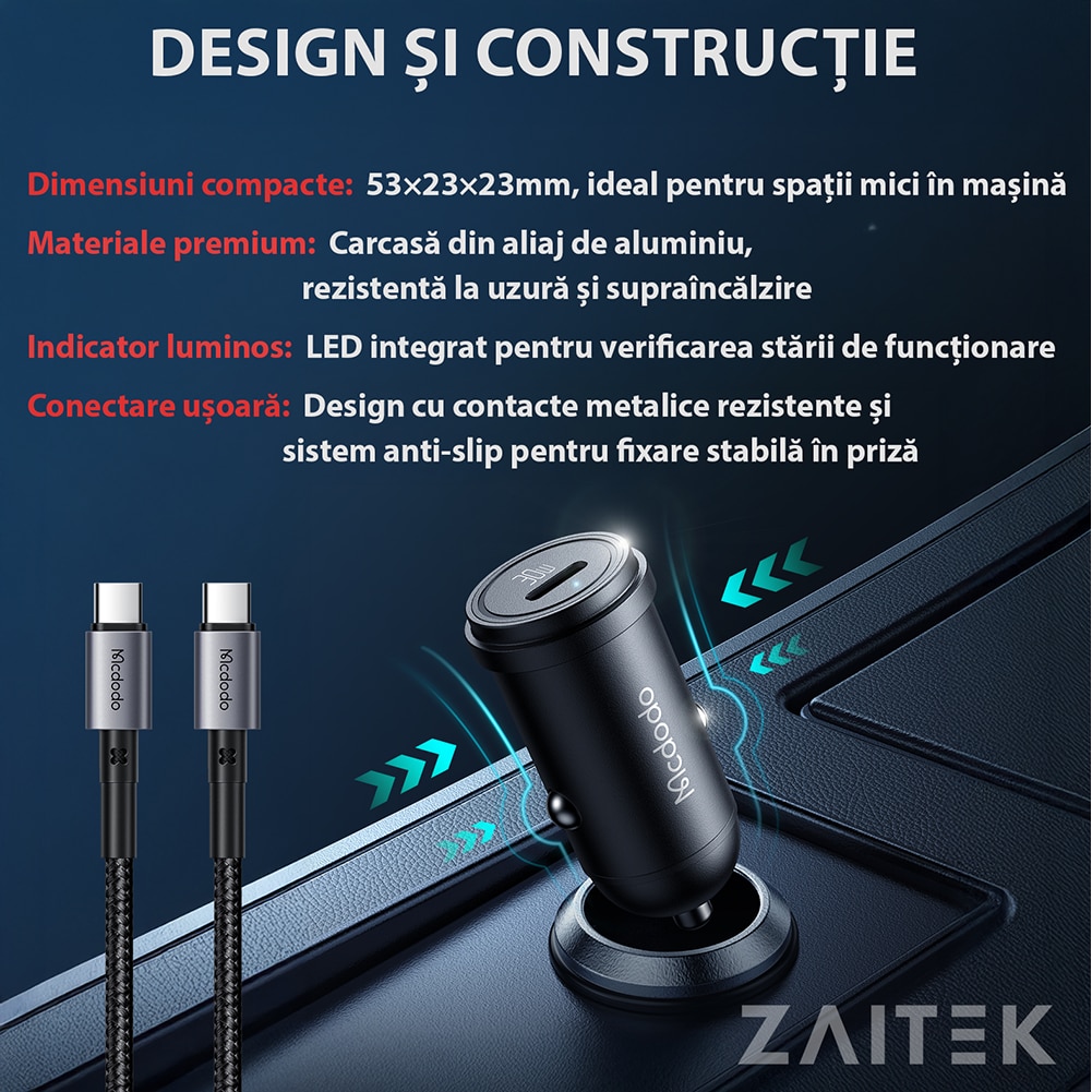 • Incarcare Inteligenta: Ajustare automata a voltajului si amperajului in functie de dispozitivul conectat.