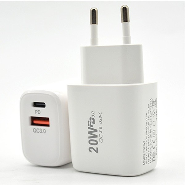 Incarcator Fast Charging pentru Telefon, Flippy, Dual Port USB-A si USB-C cu Cap de Incarcare Standard European, Power Delivery 20W Q.C 3.0, Alb