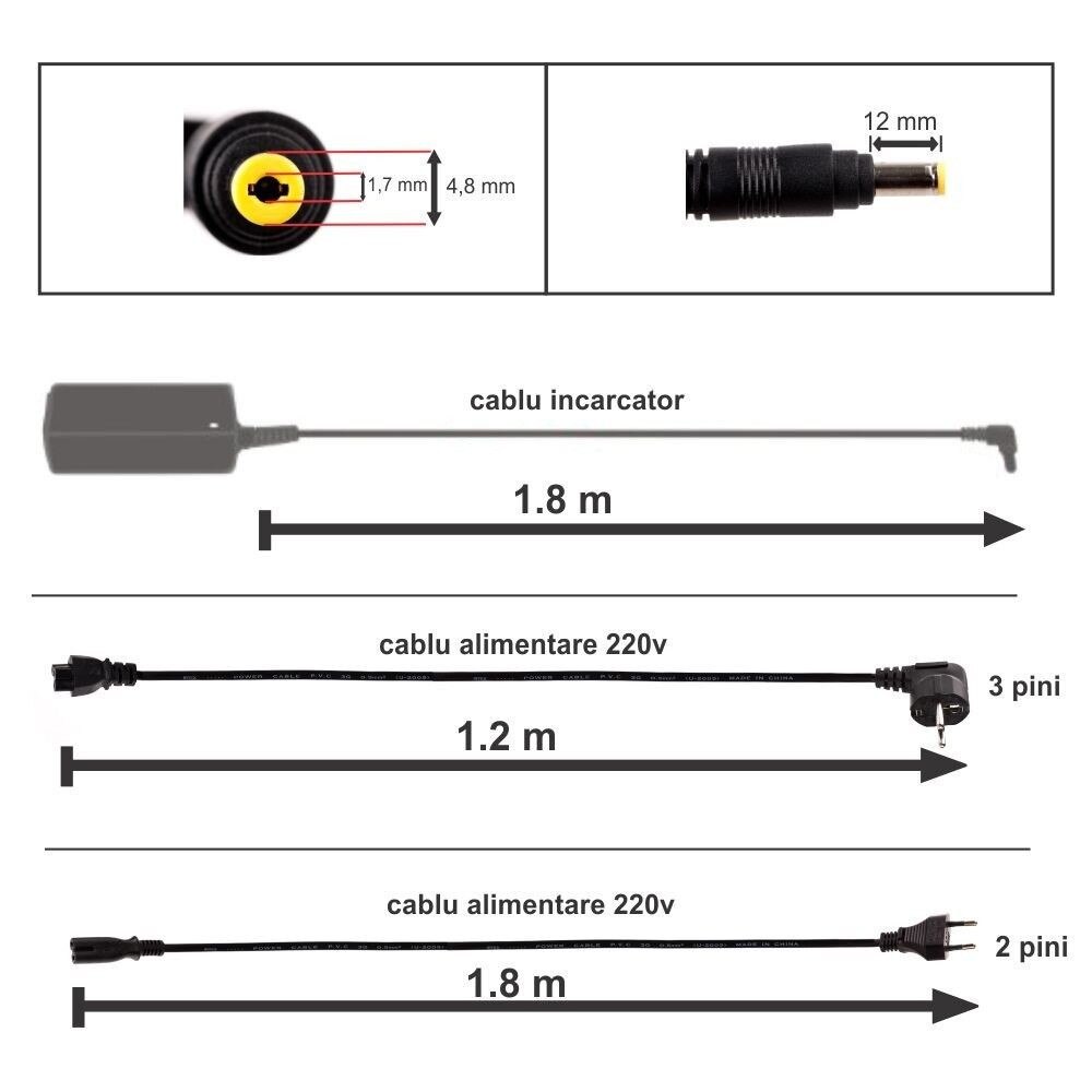 - Incarcatorul contine si cablul de alimentare.