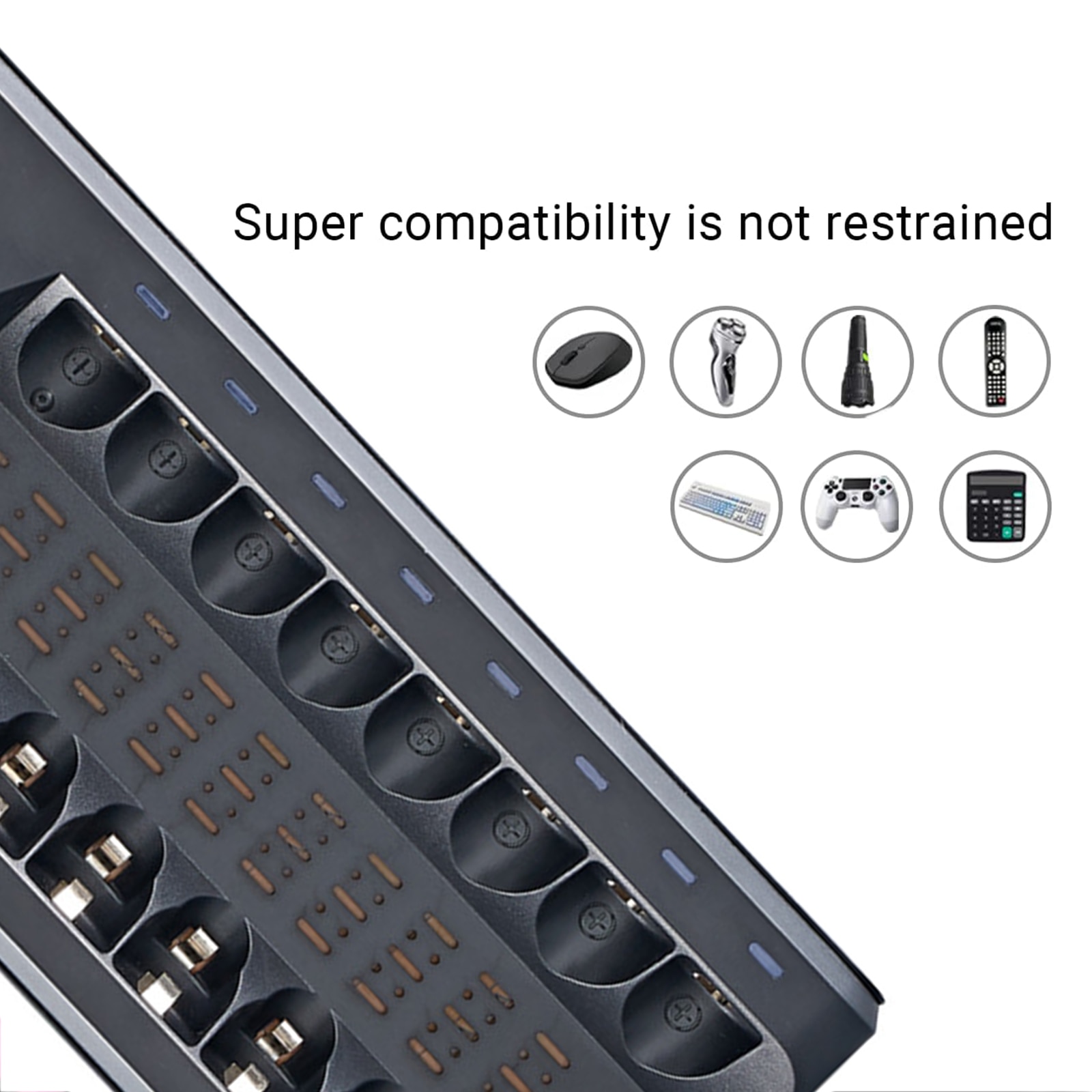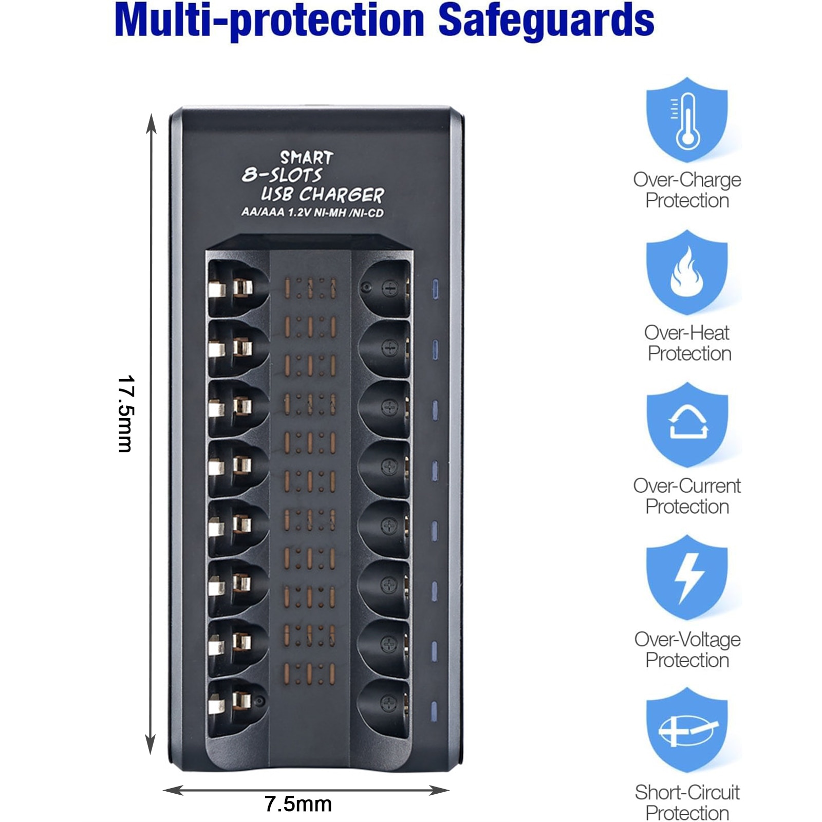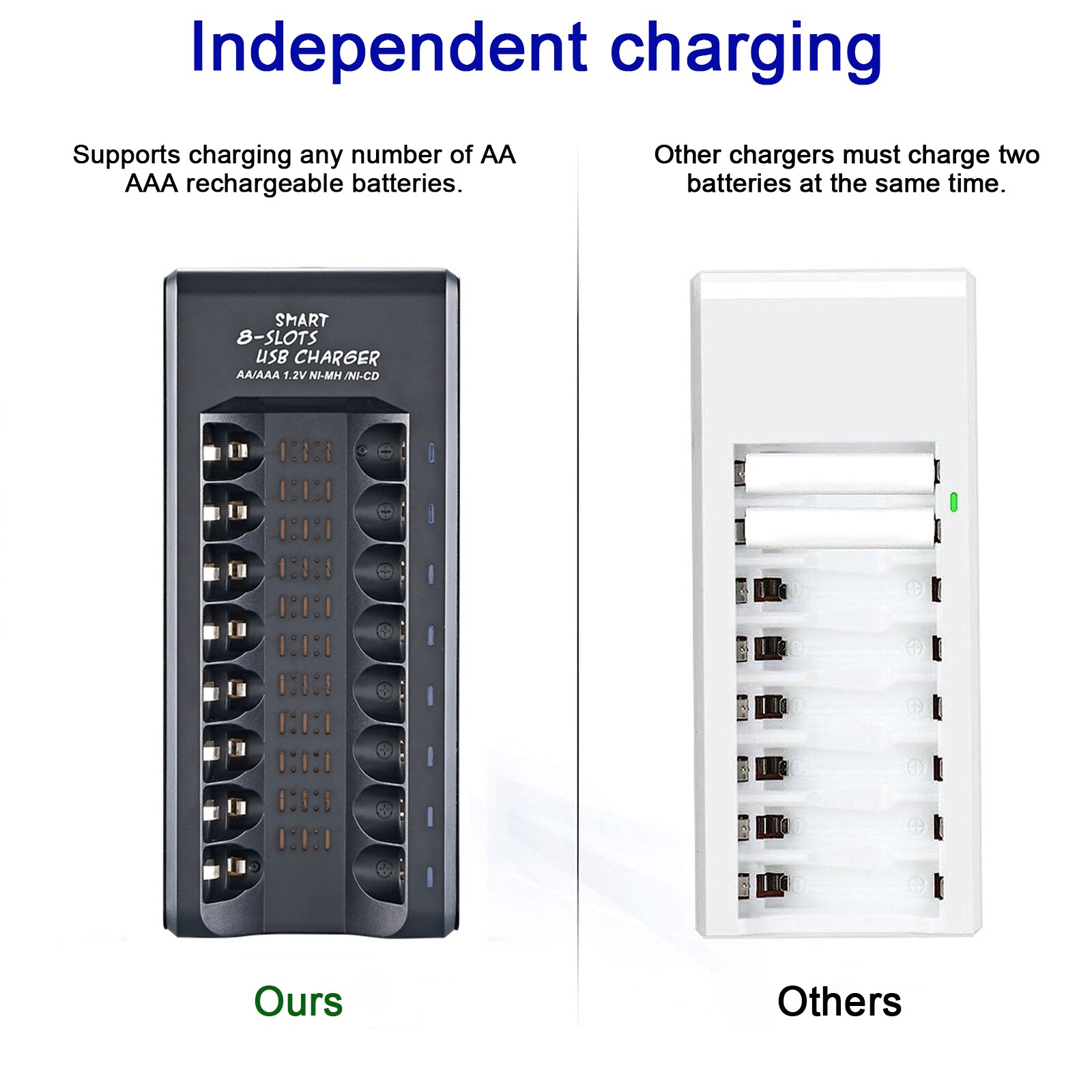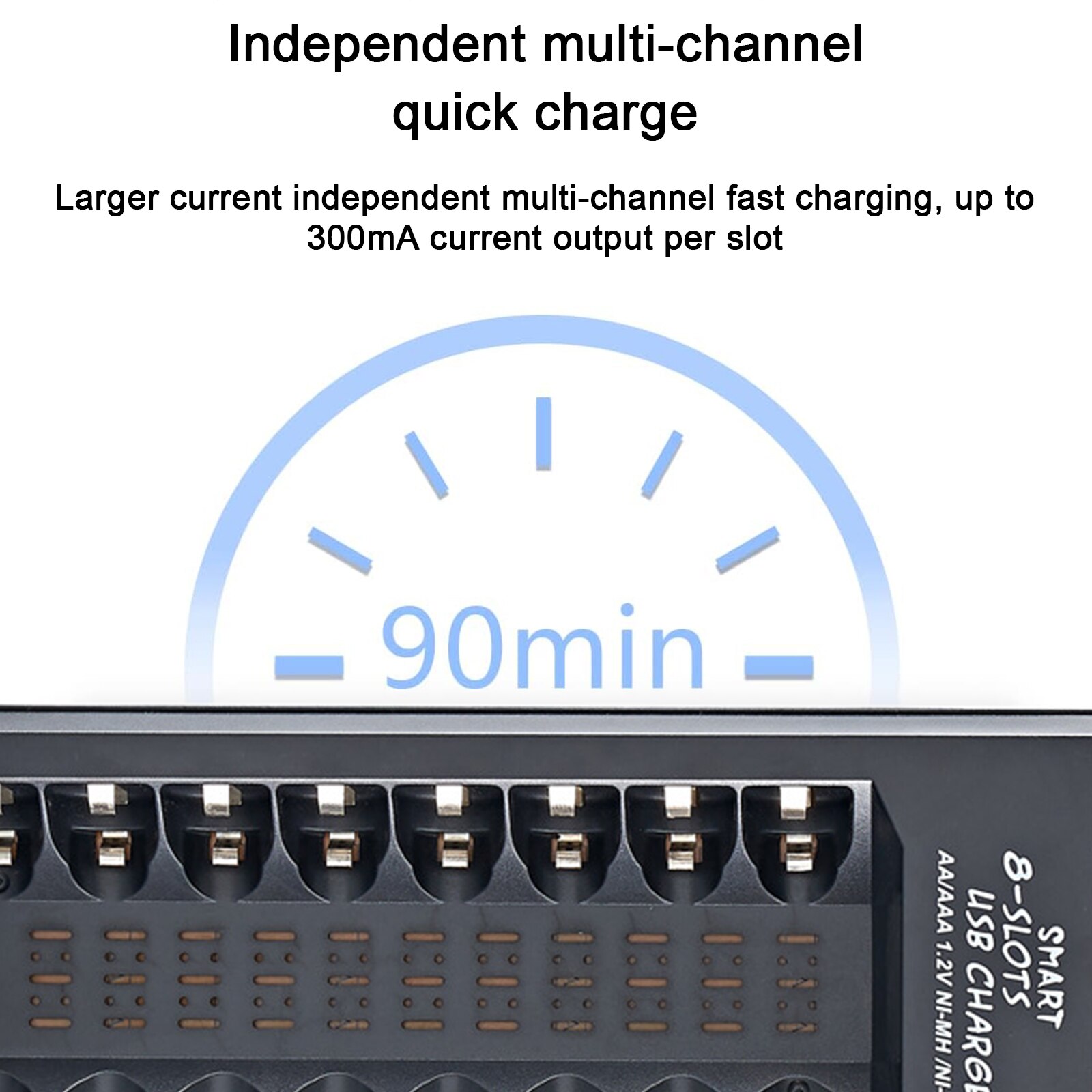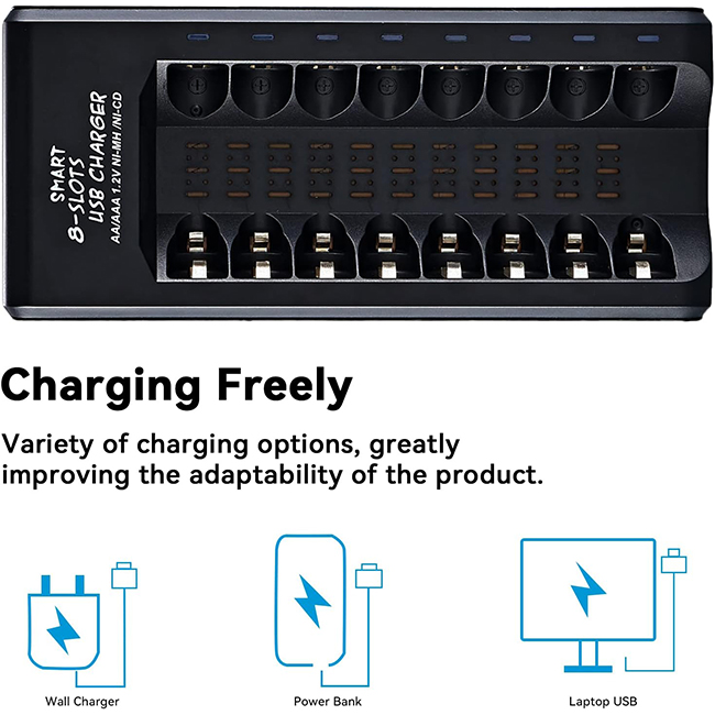 Incarcator pentru 8 acumulatori AA/AAA, NUODWELL, Alimentat prin USB, DC5V, incarcare independenta, protectie la suprasarcina si supratensiune, negru