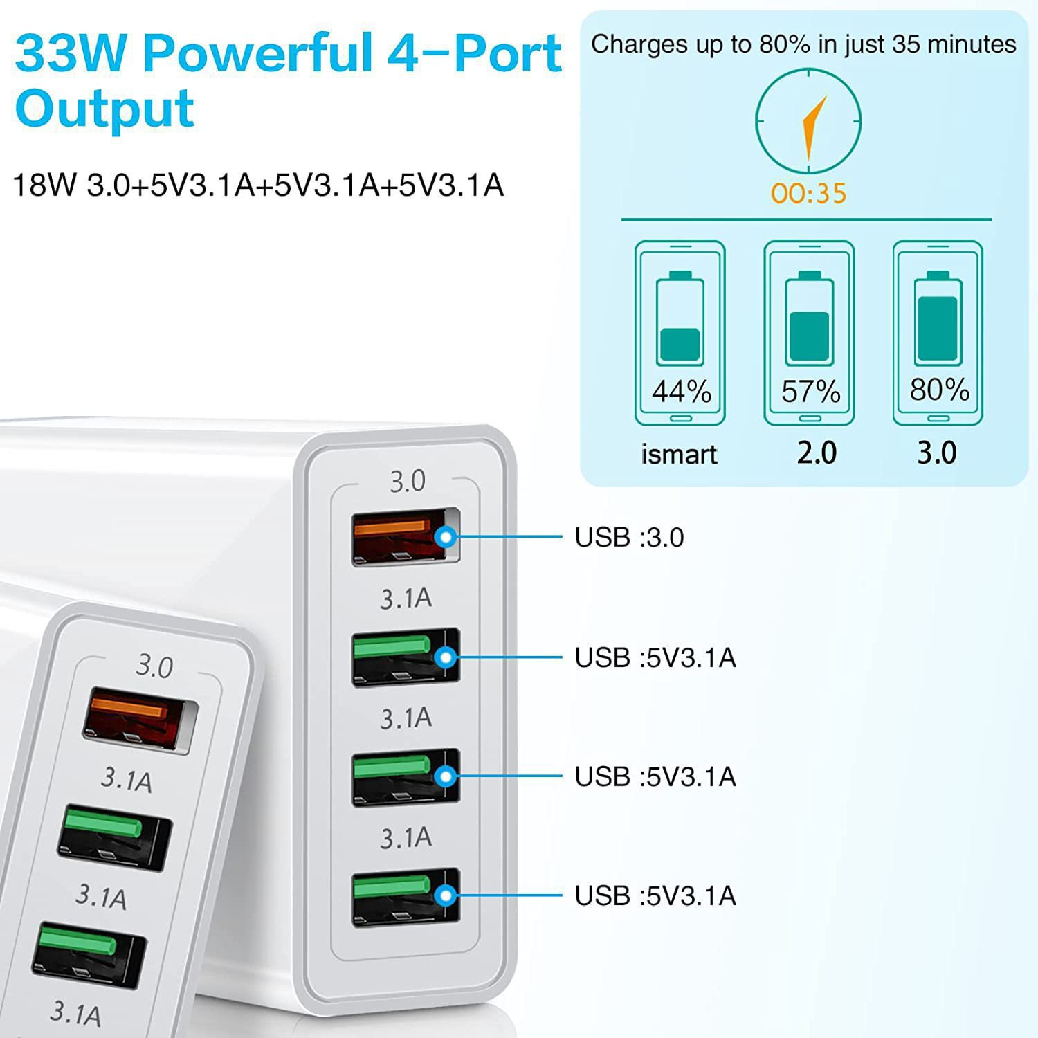 | Functii | Protectie supratensiune 4 x USB Fast Charge Incarcare rapida |