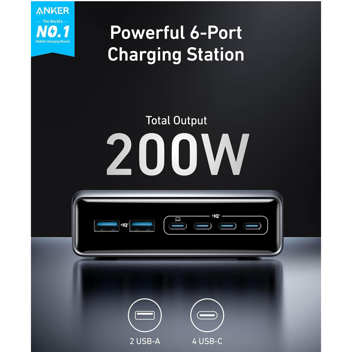 Incarcator retea Anker Prime 200W 4x USB-C Fast Charge 2X USB-A GaN USB-C PD Negru