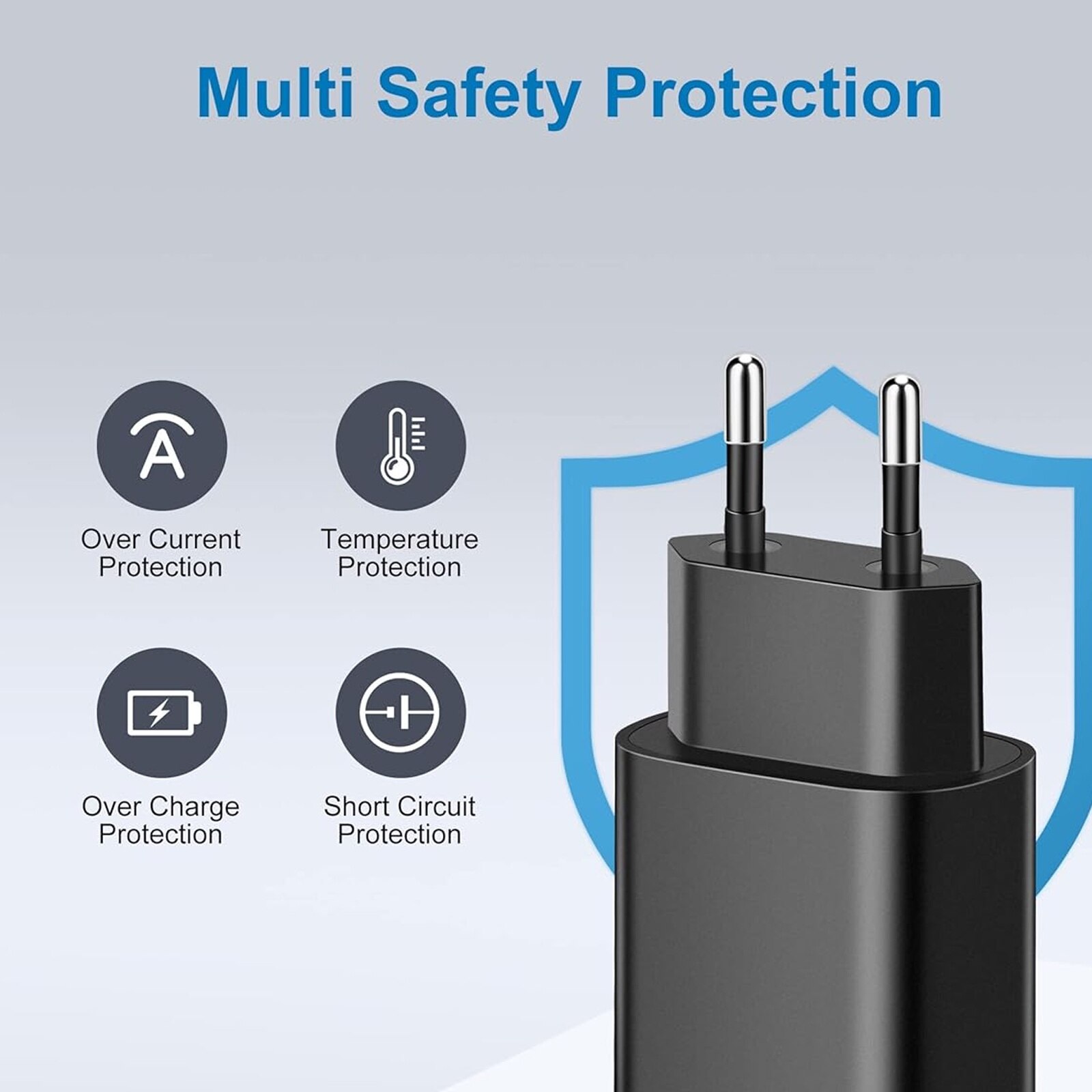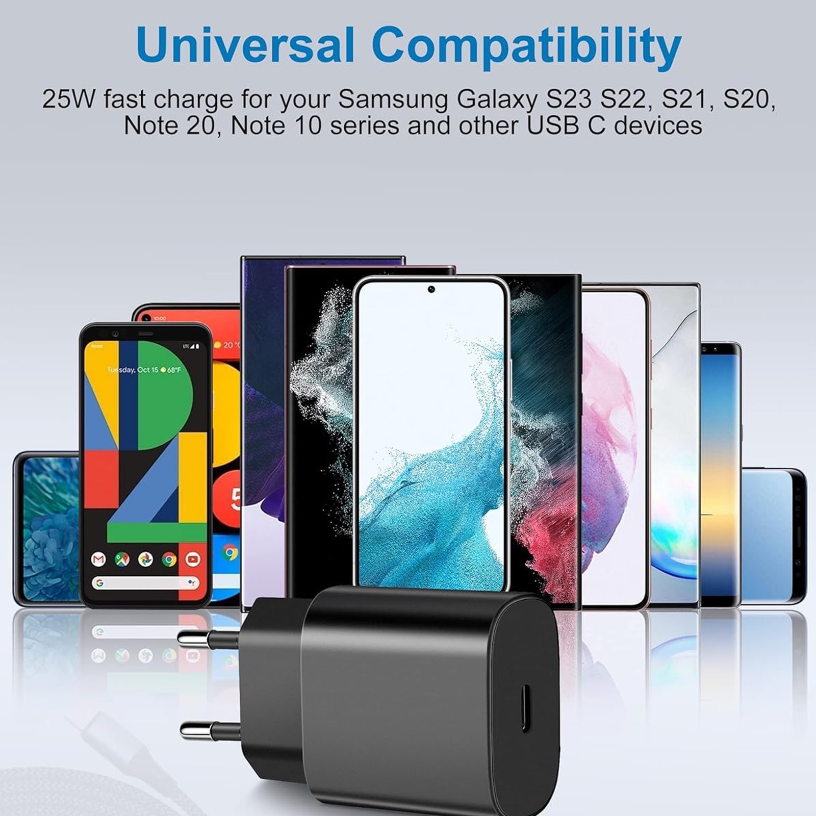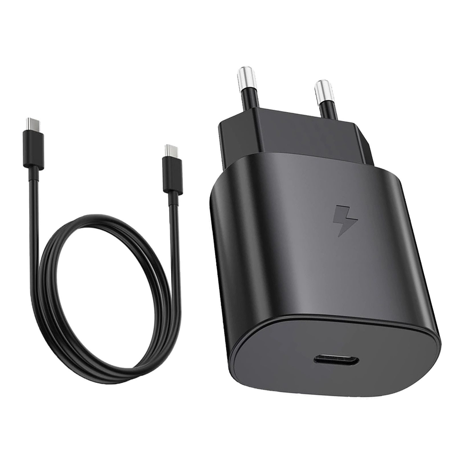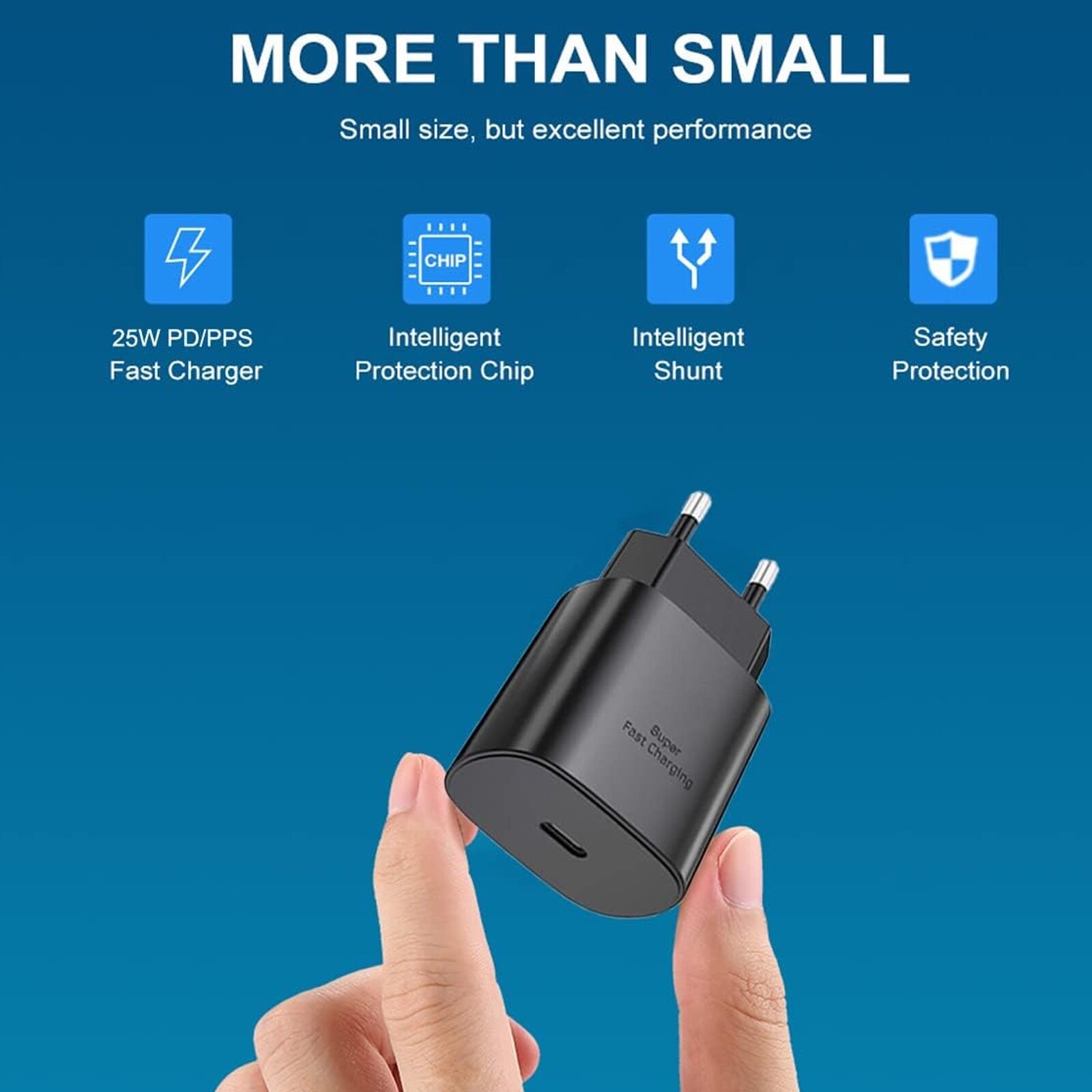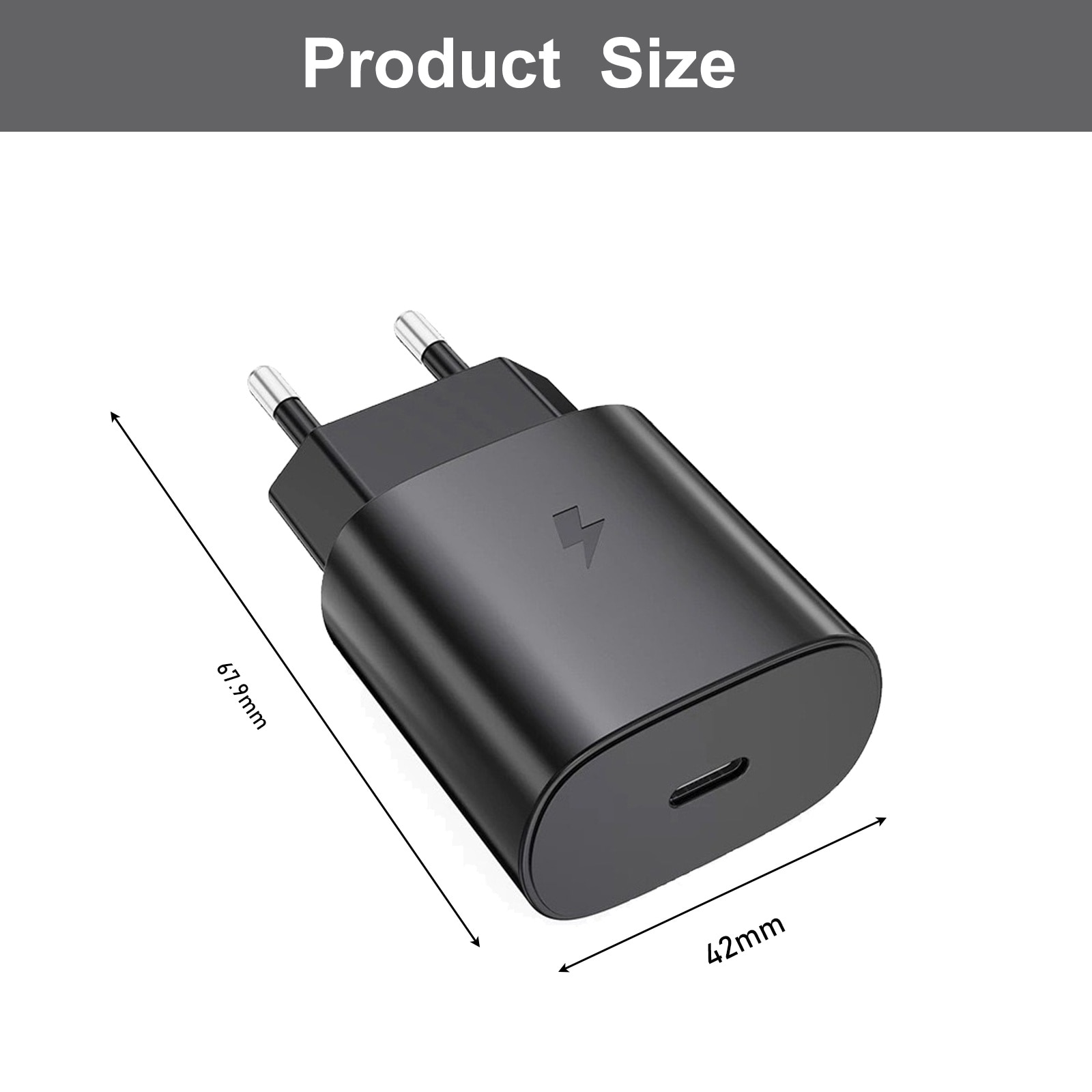 Incarcator Super Fast Charge, NUODWELL, Cu 1.5m Cablu USB-C Lightning, 25W, 3A, Sistem de protectie multipla, Usor de utilizat si de transportat, Compatibil Samsung si iPhone, PC, 26.9x42x67.9mm, Negru