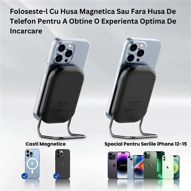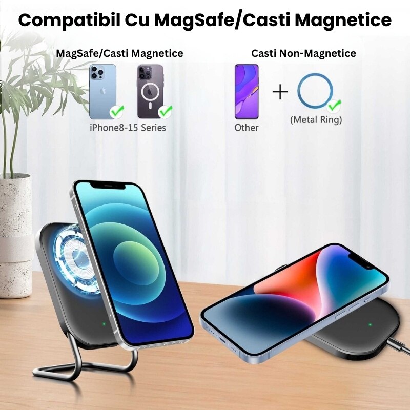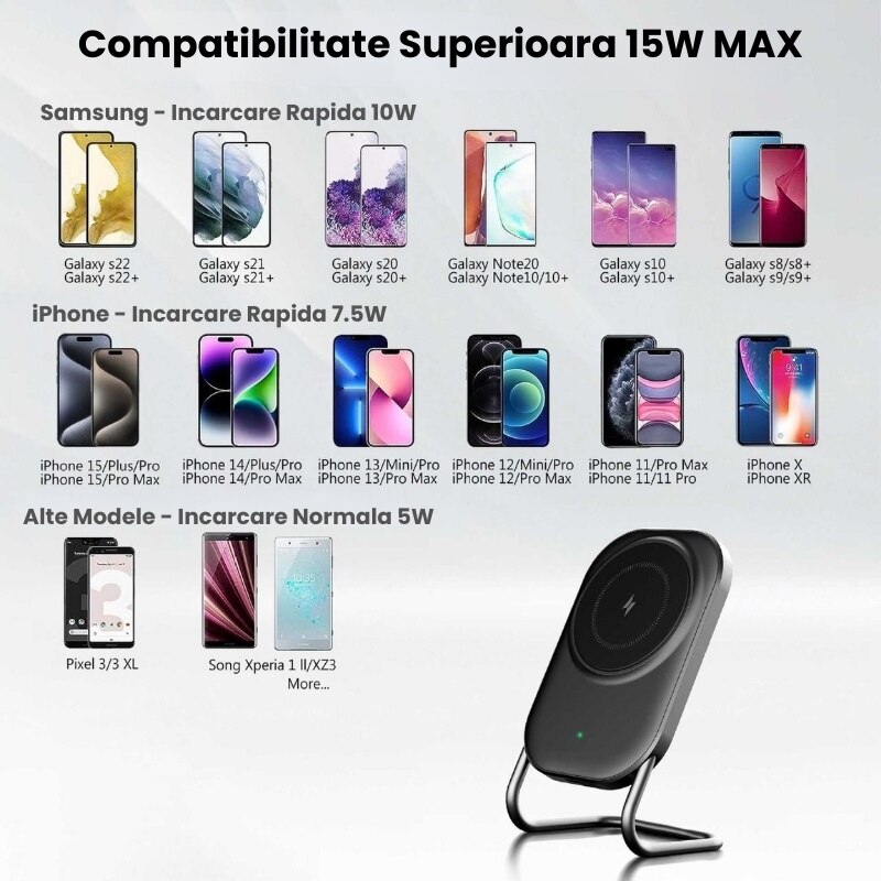 Incarcator Wireless Juvion™ 15W, Design Magnetic, Incarcare Rapida, Compatibil cu Toate Modelele iPhone, Samsung, Huawei, Xiaomi, Negru