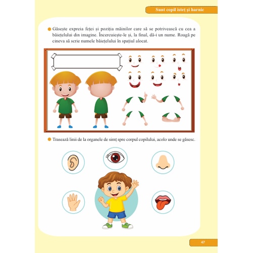 - exercitii pentru recunoasterea si gestionarea emotiilor;