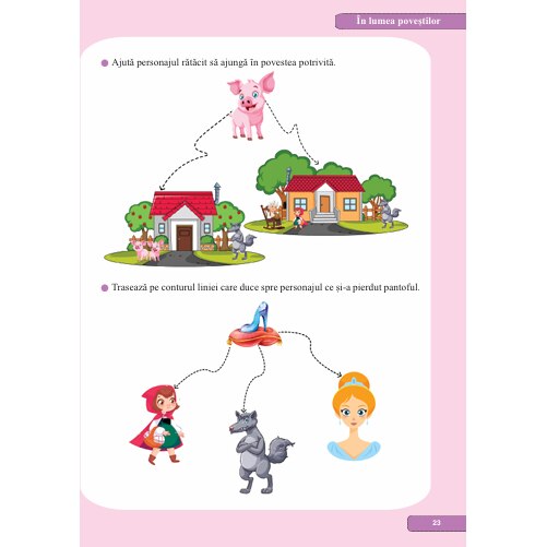 - exercitii de recunoastere si de incadrare a personajelor intr-o poveste data.