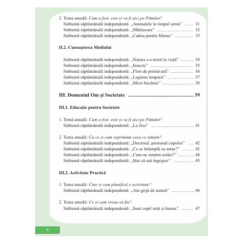 - identificarea de activitati specifice domeniilor experientiale utile in aceasta etapa;