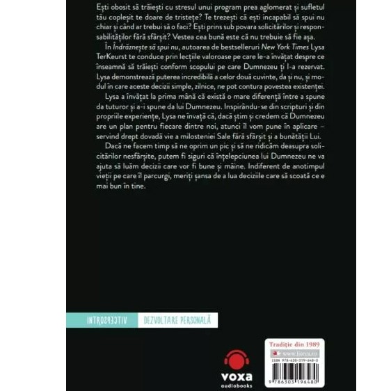 Indrazneste sa spui nu. Cum sa te eliberezi de sentimentul ca ar trebui sa le faci tuturor pe plac, Lysa Terkeurst