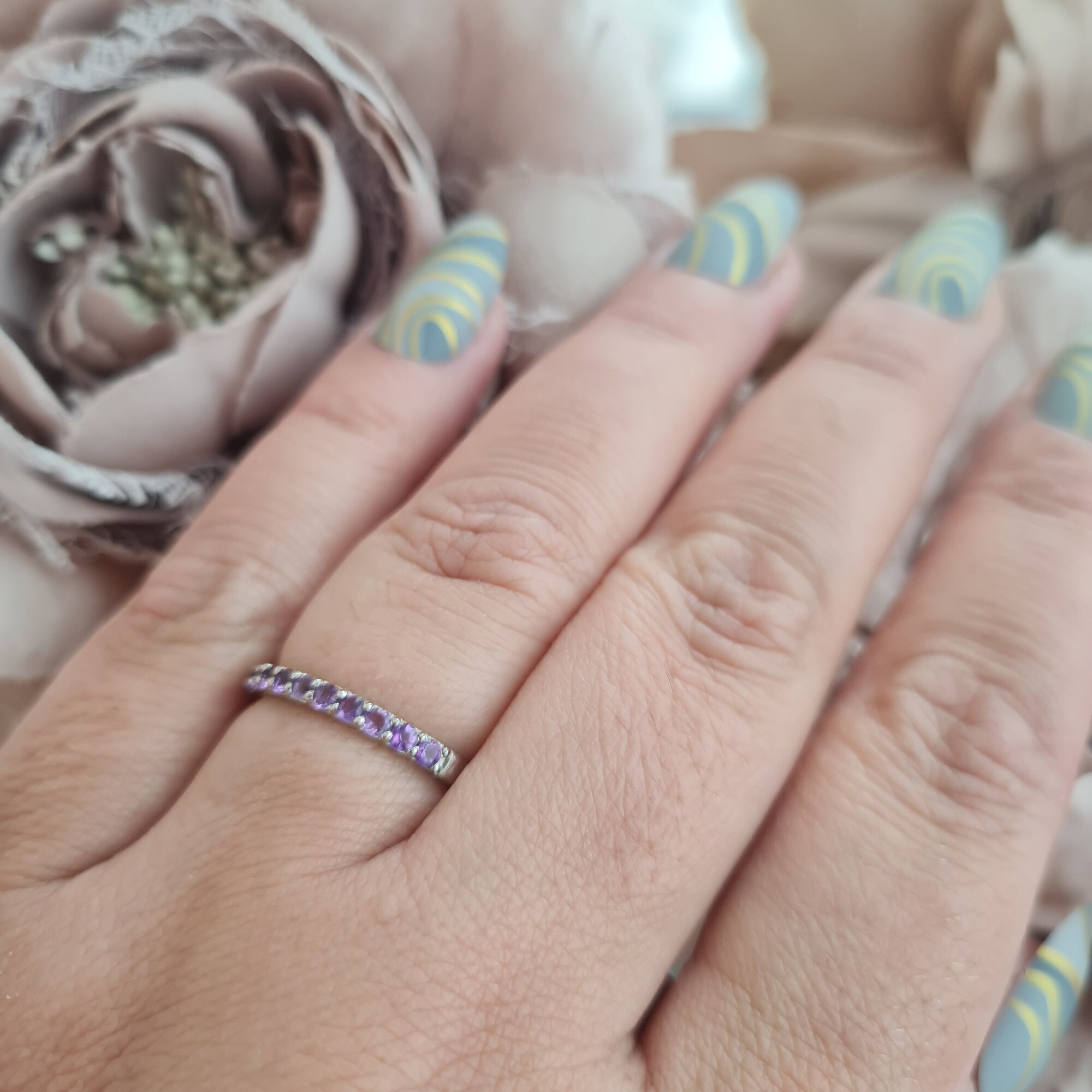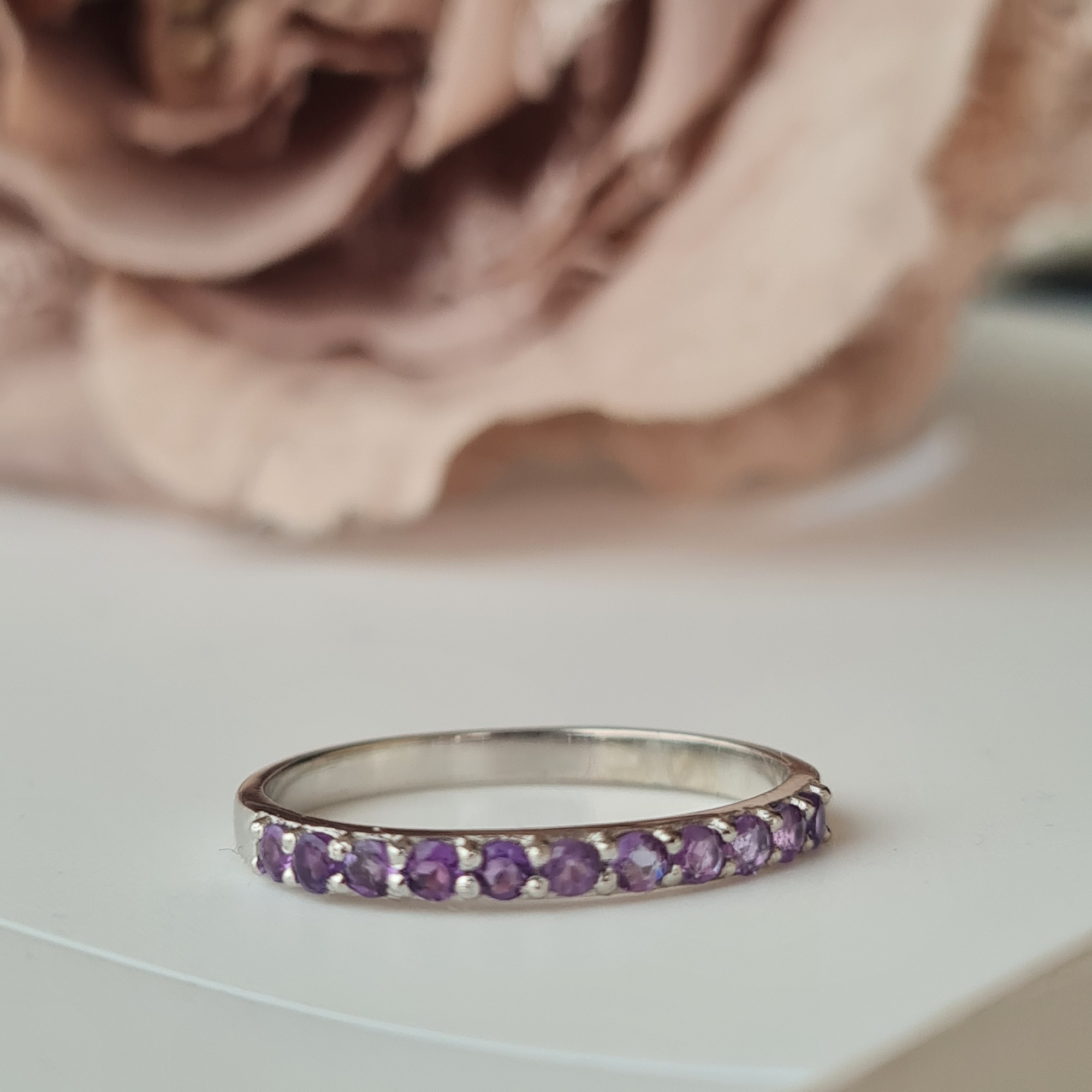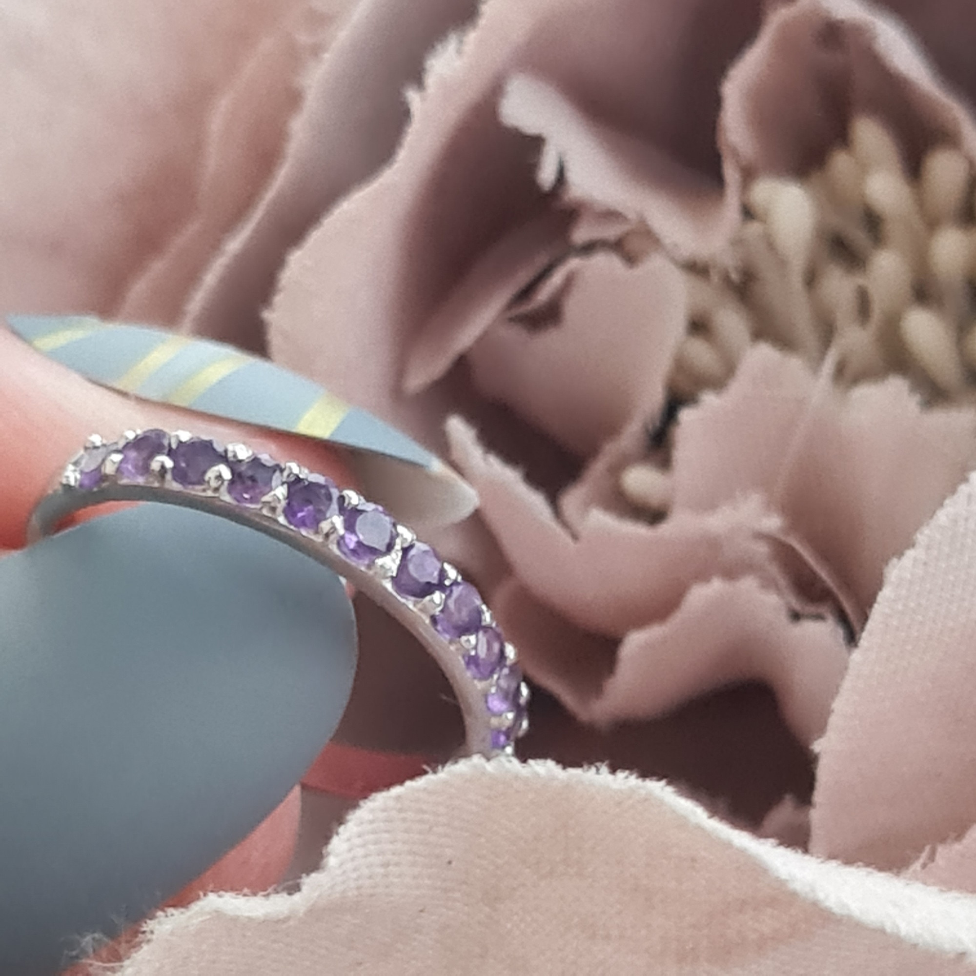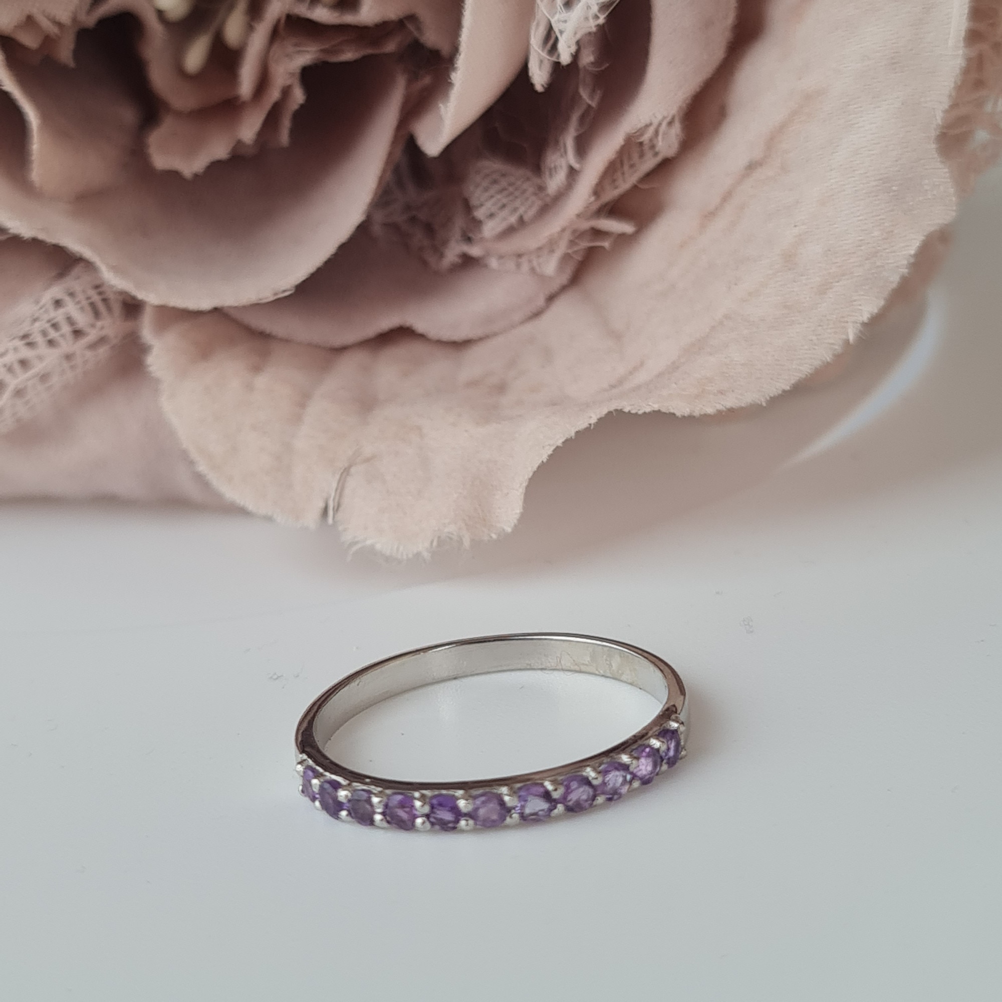 Inel argint 925, argint rodiat, cu piatra Ametist, dimensiune 16.5mm(US6), cu piatra semipretioasa