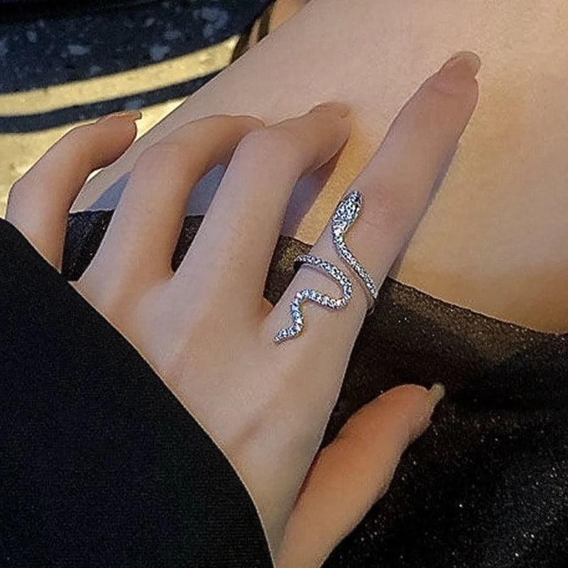 Inel argintiu, reglabil, forma de sarpe, cu pietre din zirconiu, Nera C1 - 7 (circumferinta: 54.5 mm)