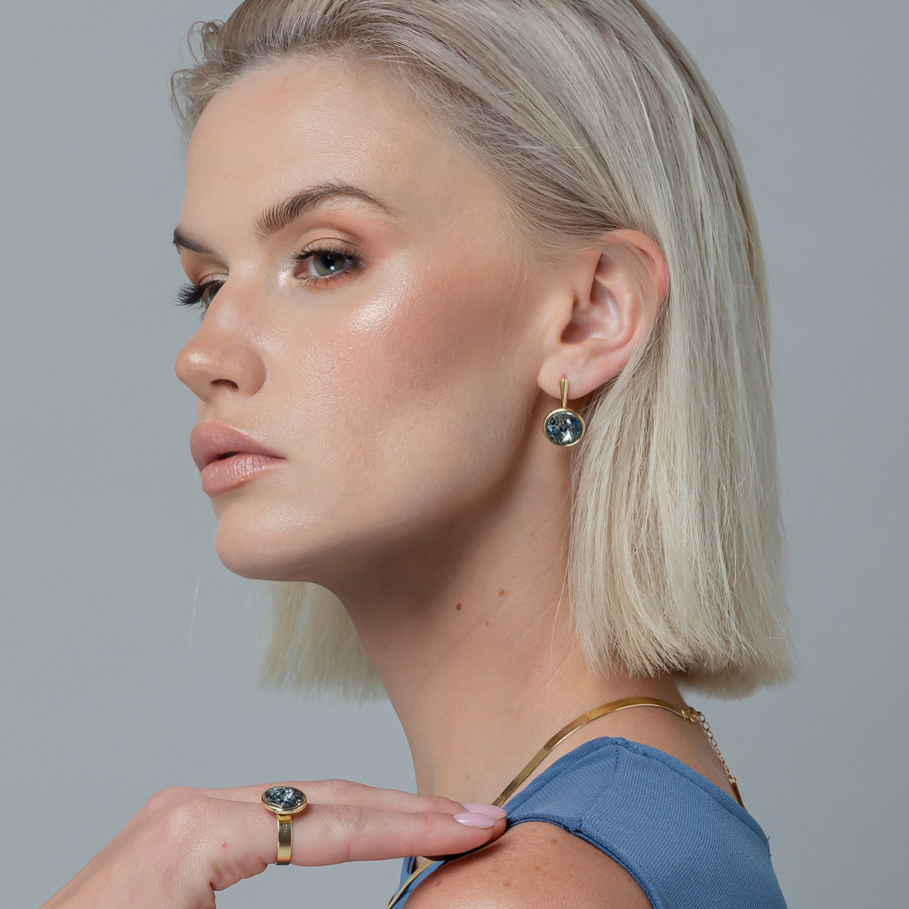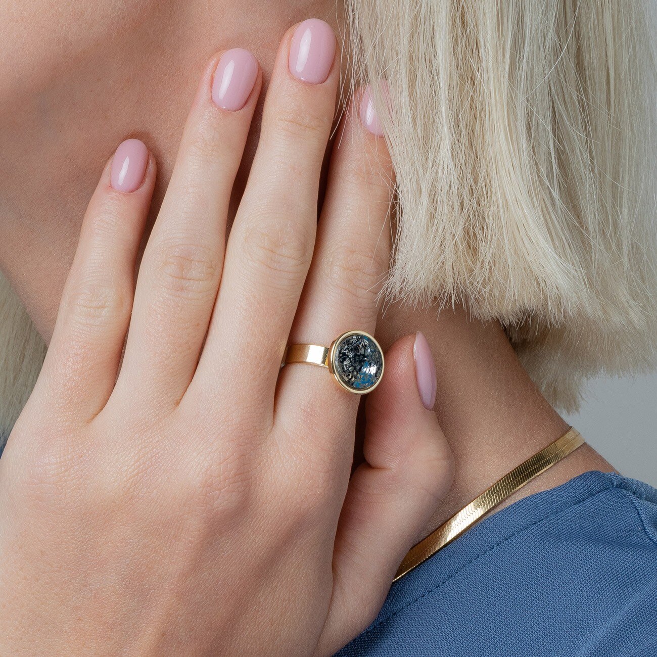 Inel din argint cu cristal GAVBARI - Patina Albastra, placat cu aur - marimea 13 | Φ16.67MM