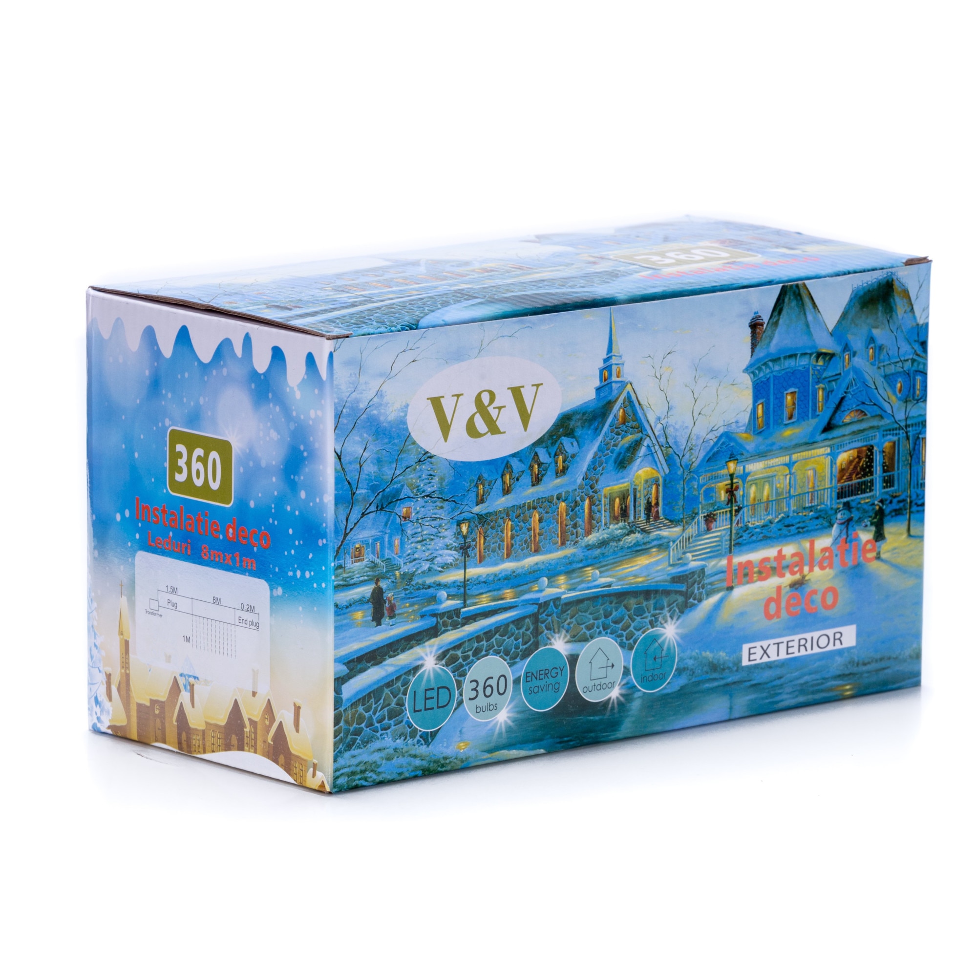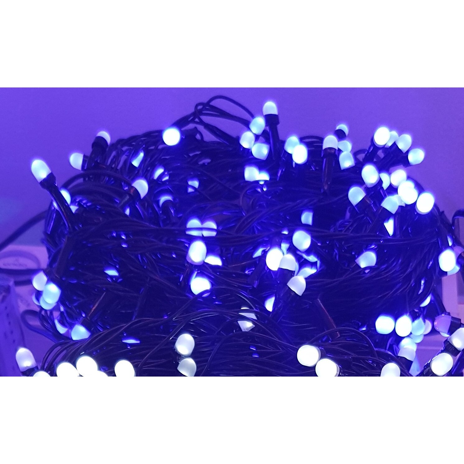 Instalatie de Craciun, 10 m, Liniara, Albastru, 100 leduri Q8, SDX, 8047B, fir negru / ghirlanda