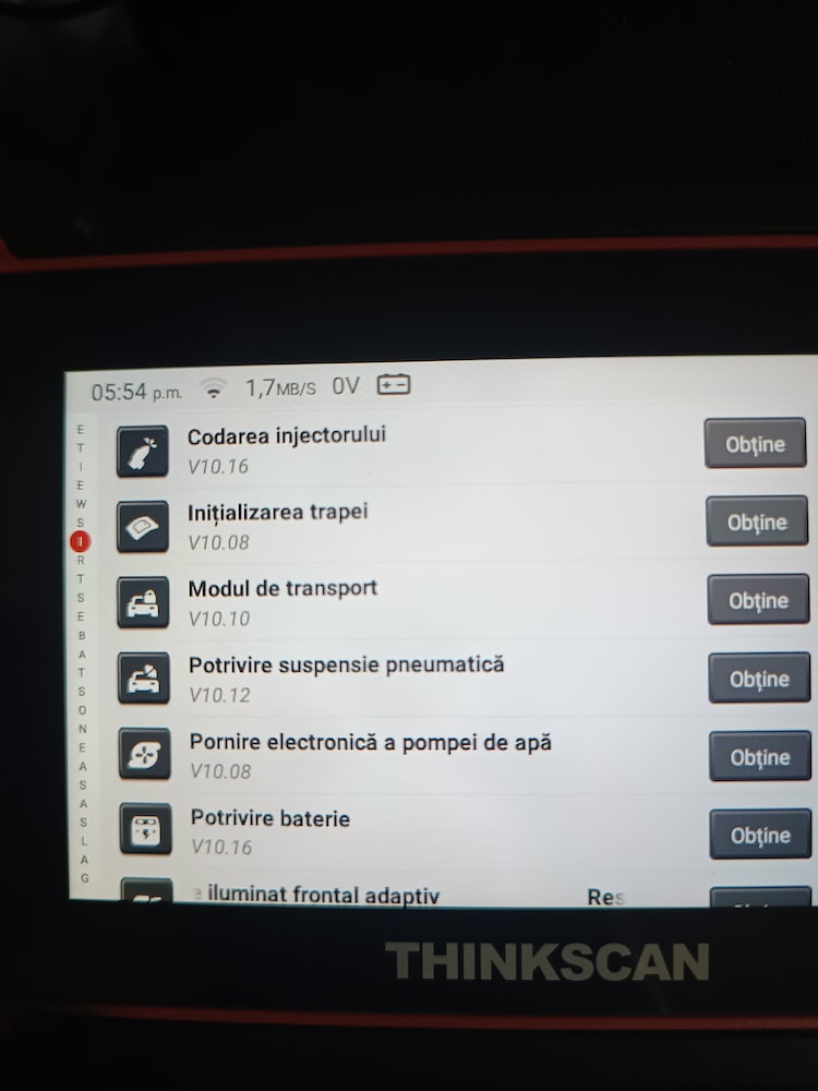 Functiile afisate in aplicatie si in tester difera de la o masina la alta. Disponibilitatea depinde de marca, model, anul de fabricatie, motorizare, nivelul de echipare si calculatorul masinii. Unele functii tin si de protocoalele suportate, de sistemele instalate pe vehicul si de modul in care producatorul a implementat diagnoza. De aceea, nu toate functiile sunt disponibile pe toate masinile, iar anumite optiuni pot aparea doar la modele compatibile.