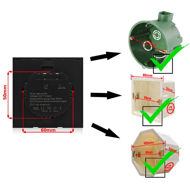 Acest intrerupator cu touch din sticla poate fi utilizat pentru a aprinde sau stinge spoturi LED, becuri LED, becuri economice, becuri incandescente sau alte tipuri de becuri.