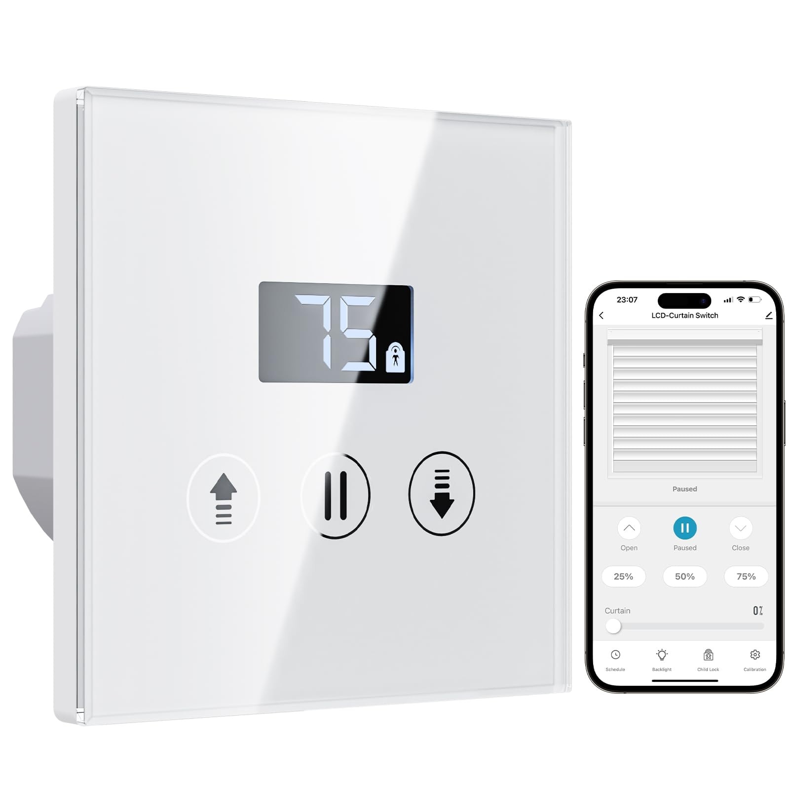 Intrerupator WiFi pentru jaluzele geam Allevoi CS02, cu ecran, functie procentaj, timer, control vocal, compatibil Alexa Google Home Smart Life, culoare alb
