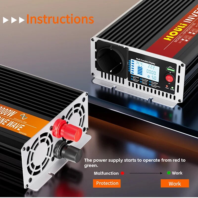Invertor cu unda sinusoidala pura, 5000W, protectie la supratemperatura, priza EU, 12V-220V-50Hz