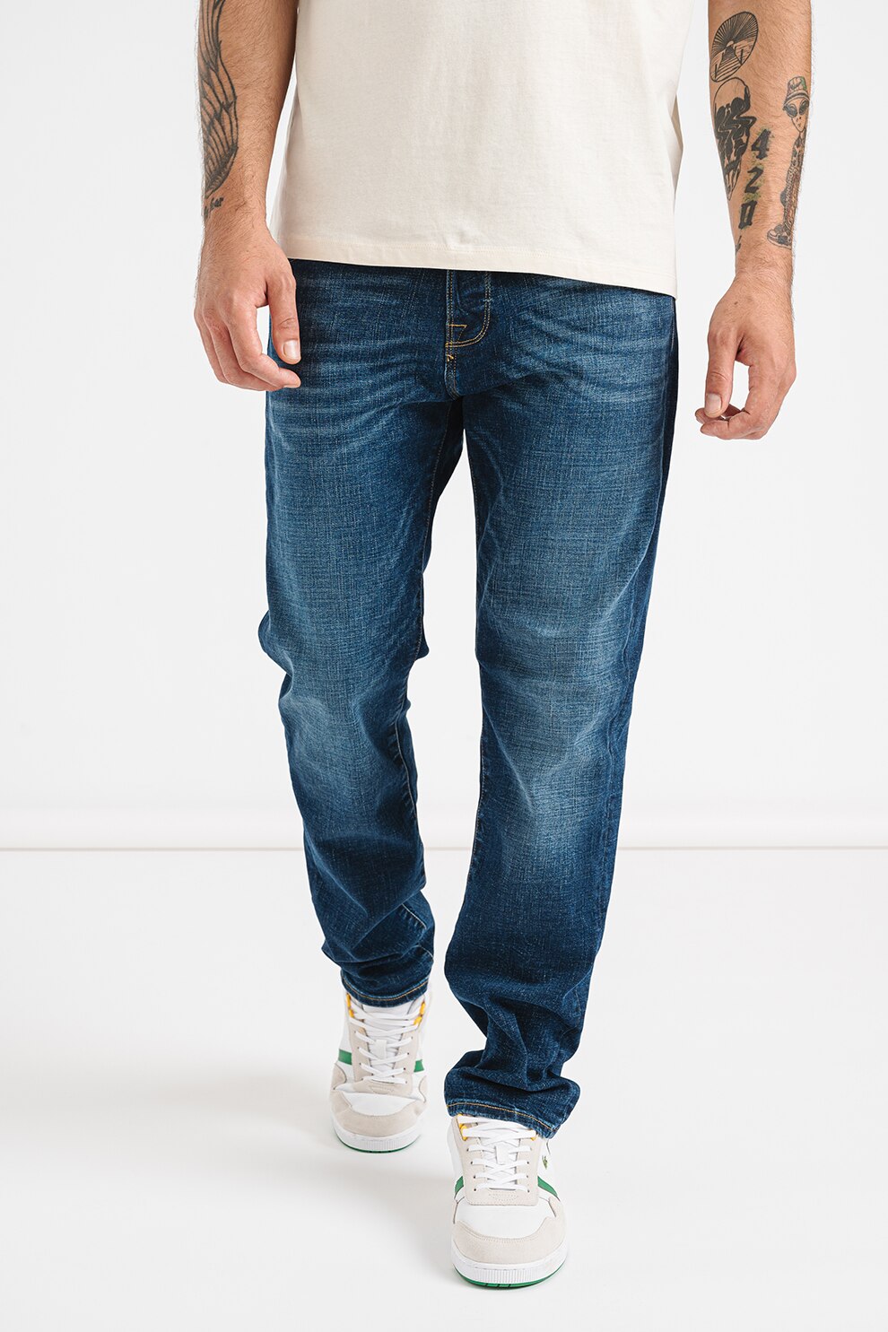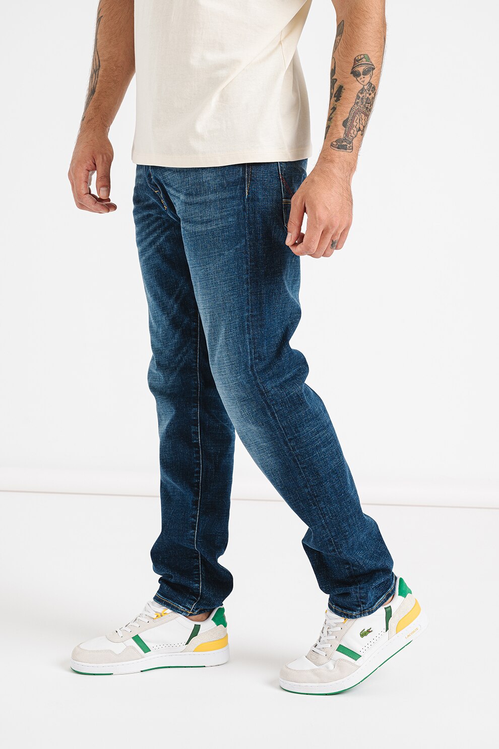- Modelul poarta un produs de marimea W32-L32.