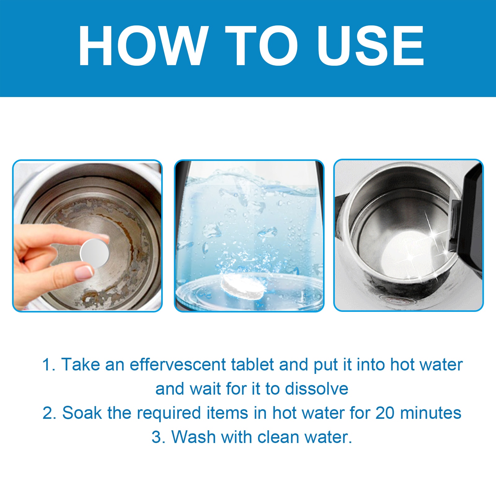 Jakehoe Scale Cleaning Tablet efervescent multifunctional pentru curatarea masinii de cafea, ceasca de ceai, indepartarea petelor de ceai incapatanate, 2 buc