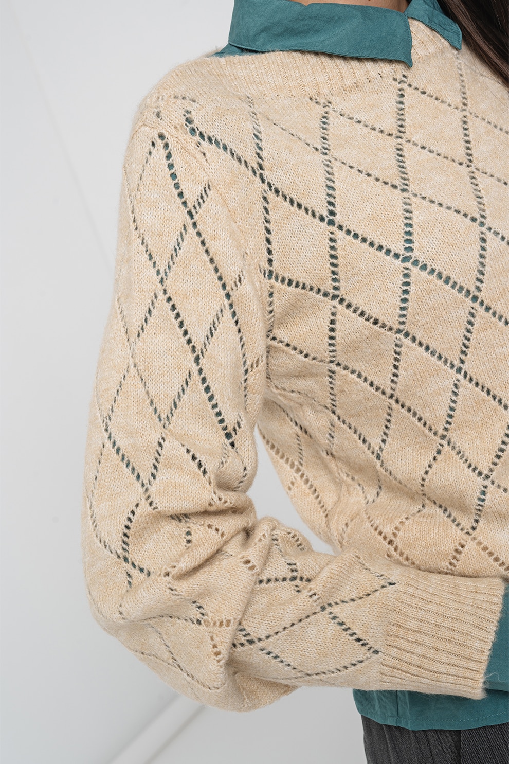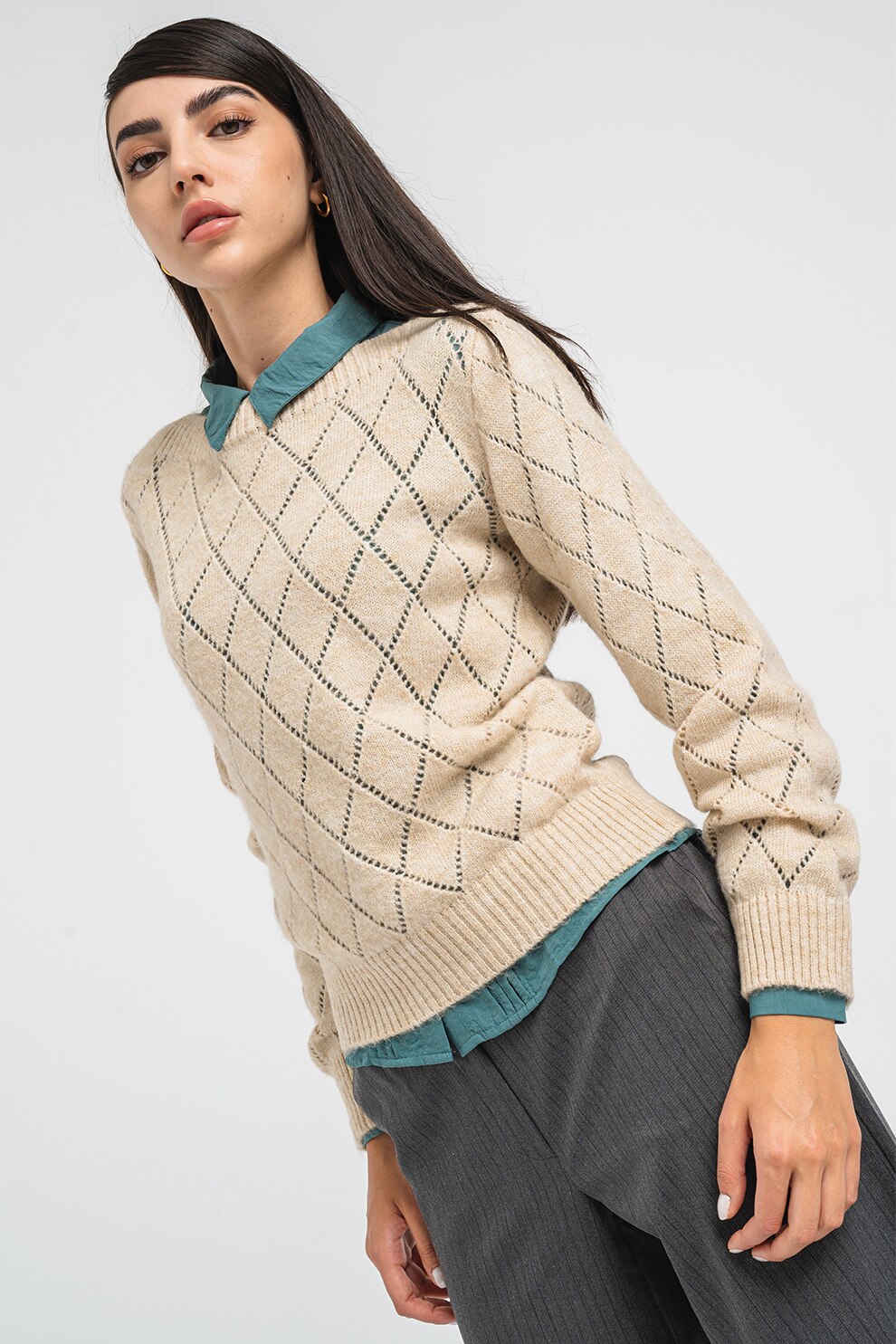JdY, Pulover cu decolteu la baza gatului, Bej, XL