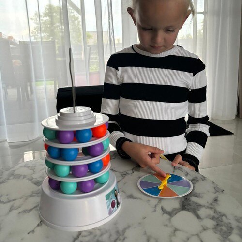 Fiecare tura aduce o noua provocare, deoarece ruleta decide ce culoare de bila trebuie extrasa, iar indepartarea pieselor reduce treptat stabilitatea turnului. Realizat din polistiren PS rezistent, acest joc este o modalitate excelenta de a petrece timp de calitate in familie, oferind o doza sanatoasa de competitie si multa distractie!