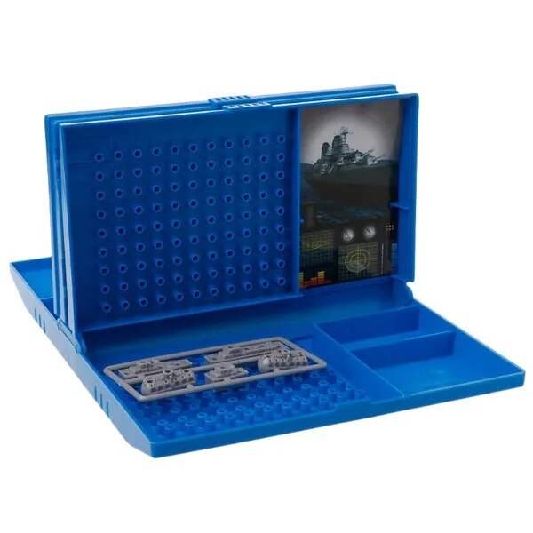 Joc de societate, set batalii navale, piese de sah alb si portocaliu, tabla de joc albastra, 13x15x23.5cm
