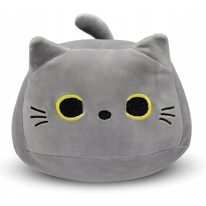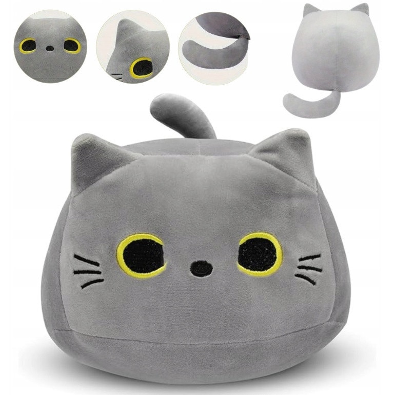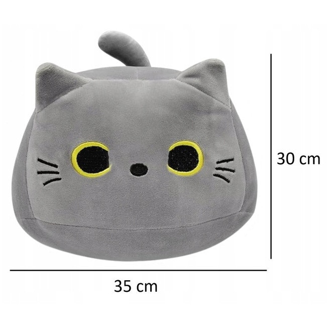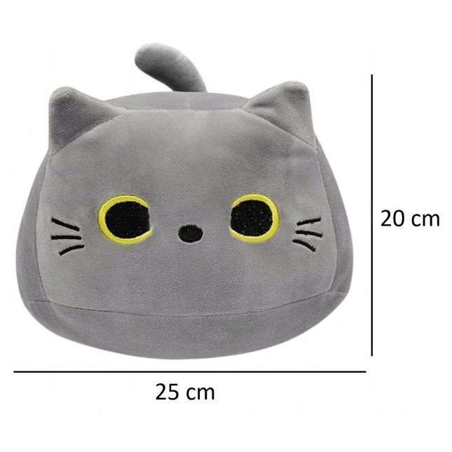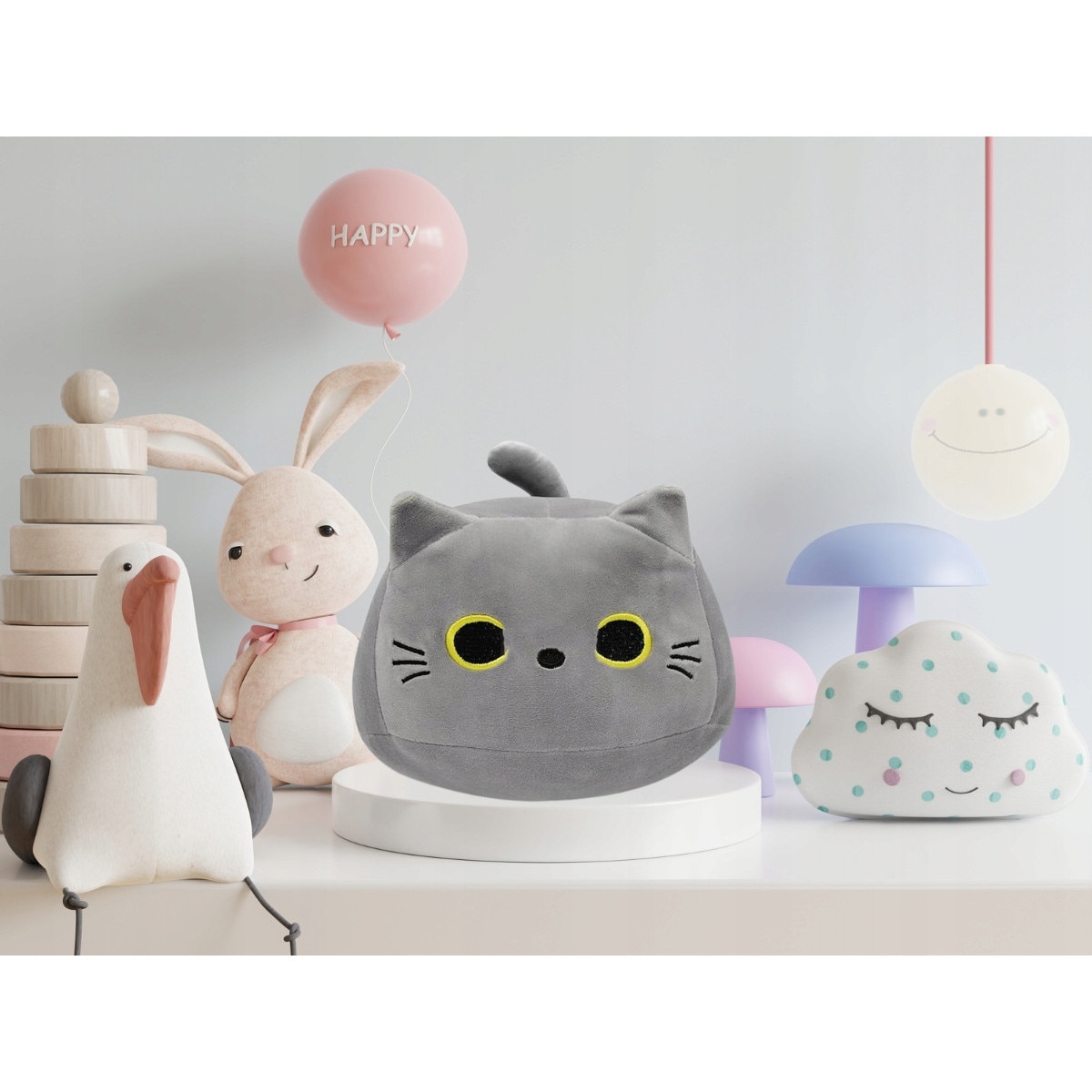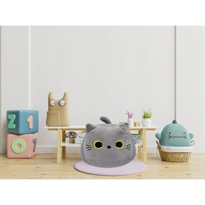 Jucarie Pisicut Rotund, Perna, Gri, 30x35 cm, Material Rezistent La Intindere Si Sifonare, Complet Sigur Pentru Copii - Material Netoxic Si Prietenos Cu Mediul, Umplut Cu Spuma Moale