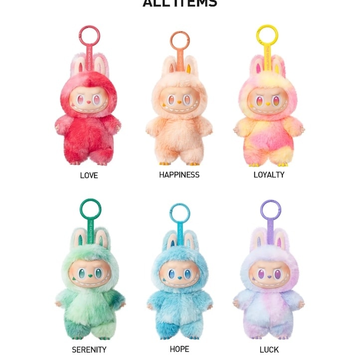 Jucarie plus mistery box Labubu Big, dimensiune 15 cm, din plus moale si pufos, cu ochi mari, urechi ascutite si zambet strengar, multicolor