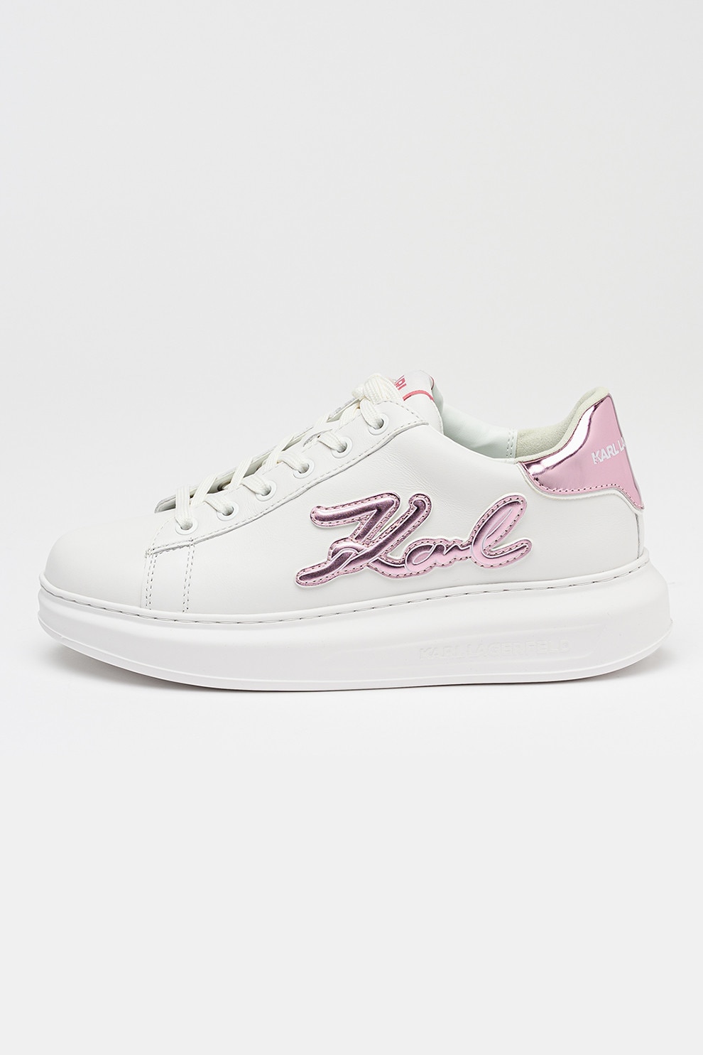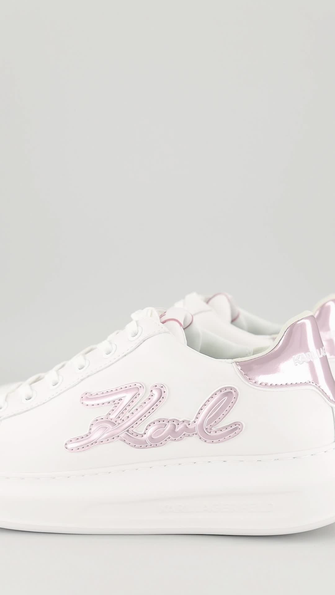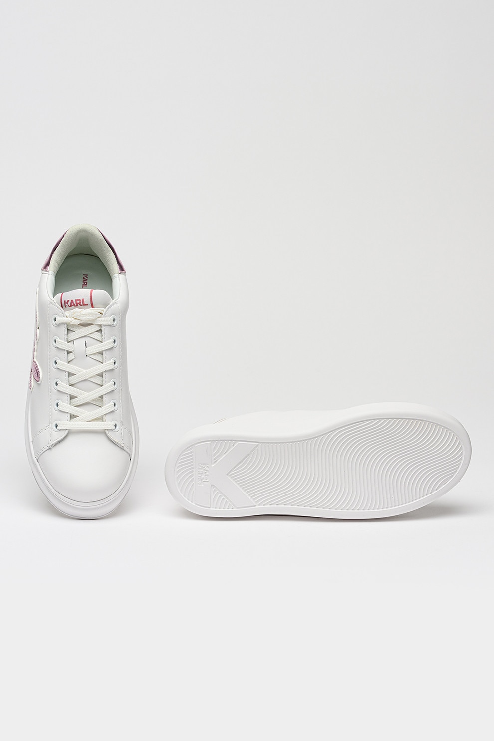 Karl Lagerfeld, Pantofi sport din piele cu imprimeu logo, Lila/Alb optic
