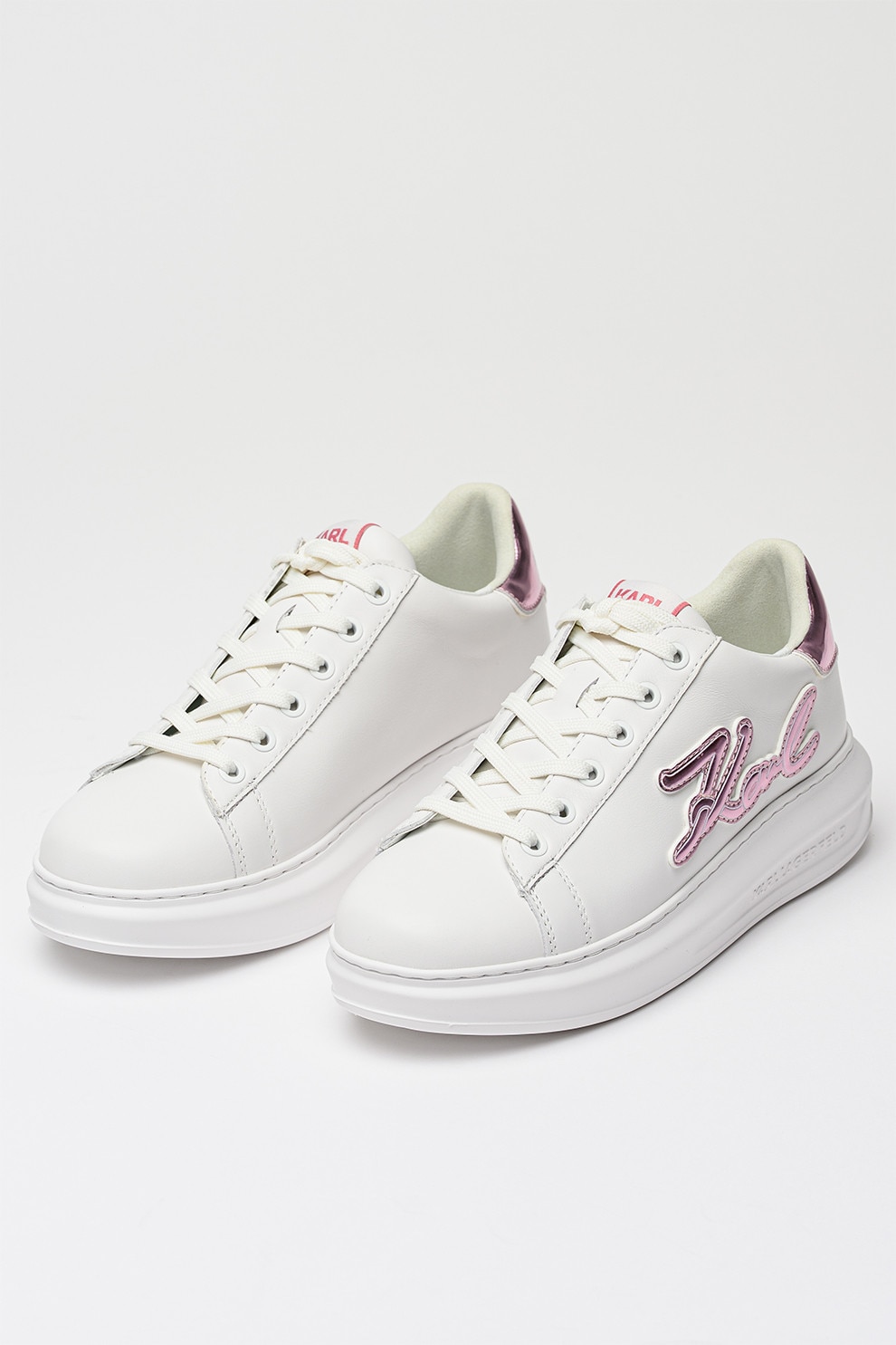 Karl Lagerfeld - Pantofi sport din piele cu imprimeu logo, Lila/Alb optic