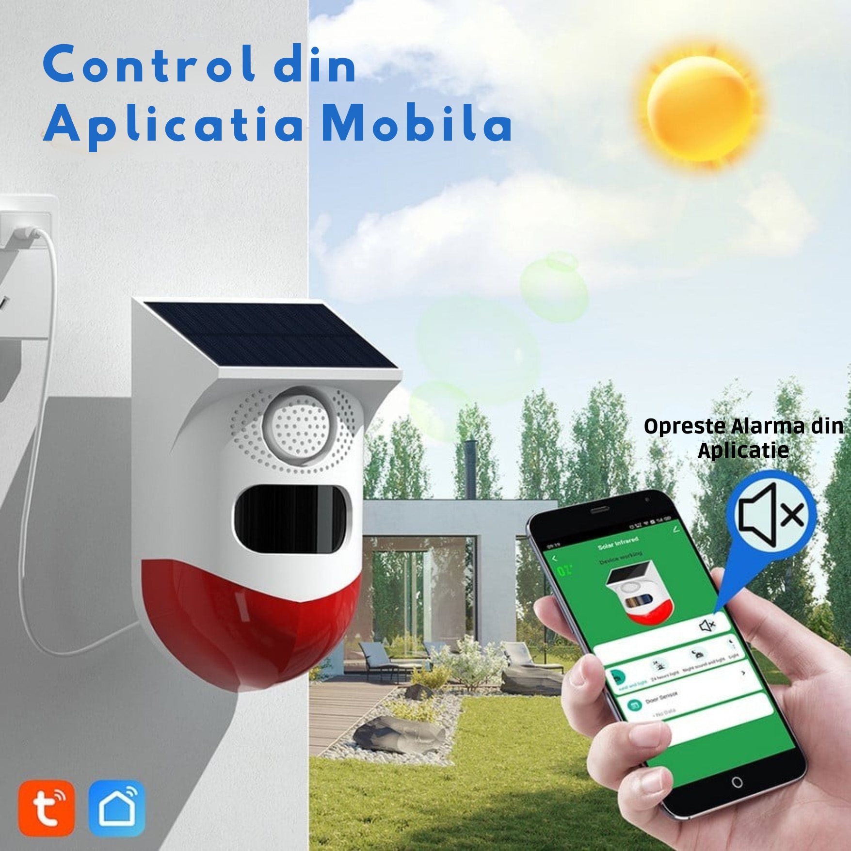 | Functii speciale | Control de la distanta Aplicatie dedicata pentru Android si iOS Alarma sonora Aplicatie de control si configurare la distanta direct de pe smartphone Control prin aplicatie Aplicatie Tuya Alarma sonora si vizuala |