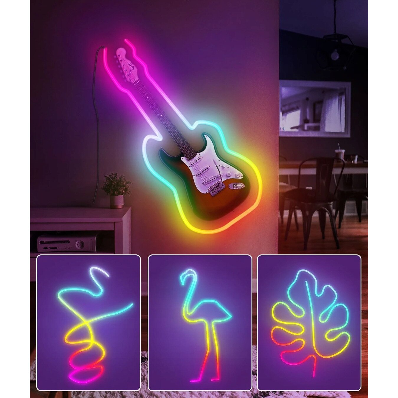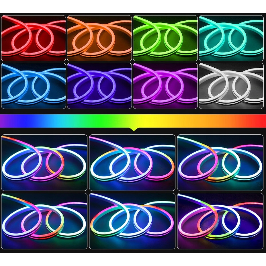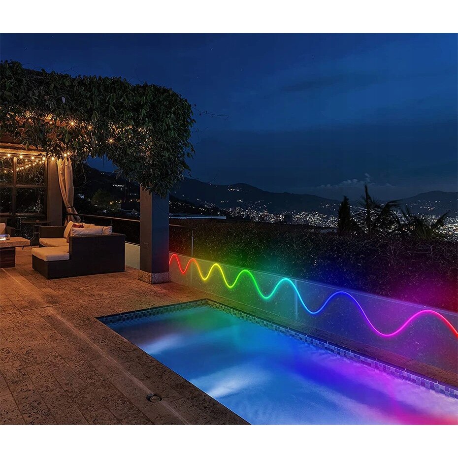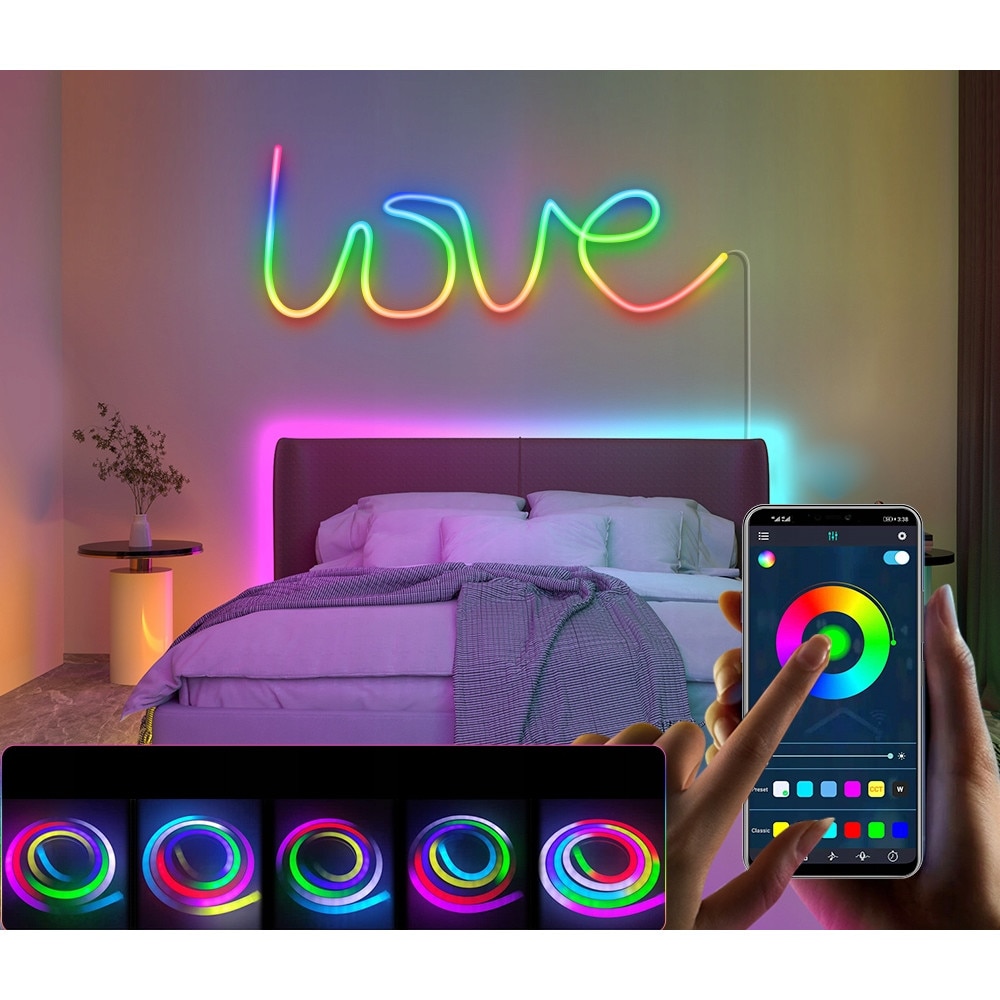 Kit Banda LED NEON 5050+WS2812B RGBIC, Bluetooth, Control Prin Aplicatie Mobila, 8 metri (2x4m), 300 LED-uri, Rezistent la Apa IP67, Luminozitate Reglabila, Efect Curcubeu