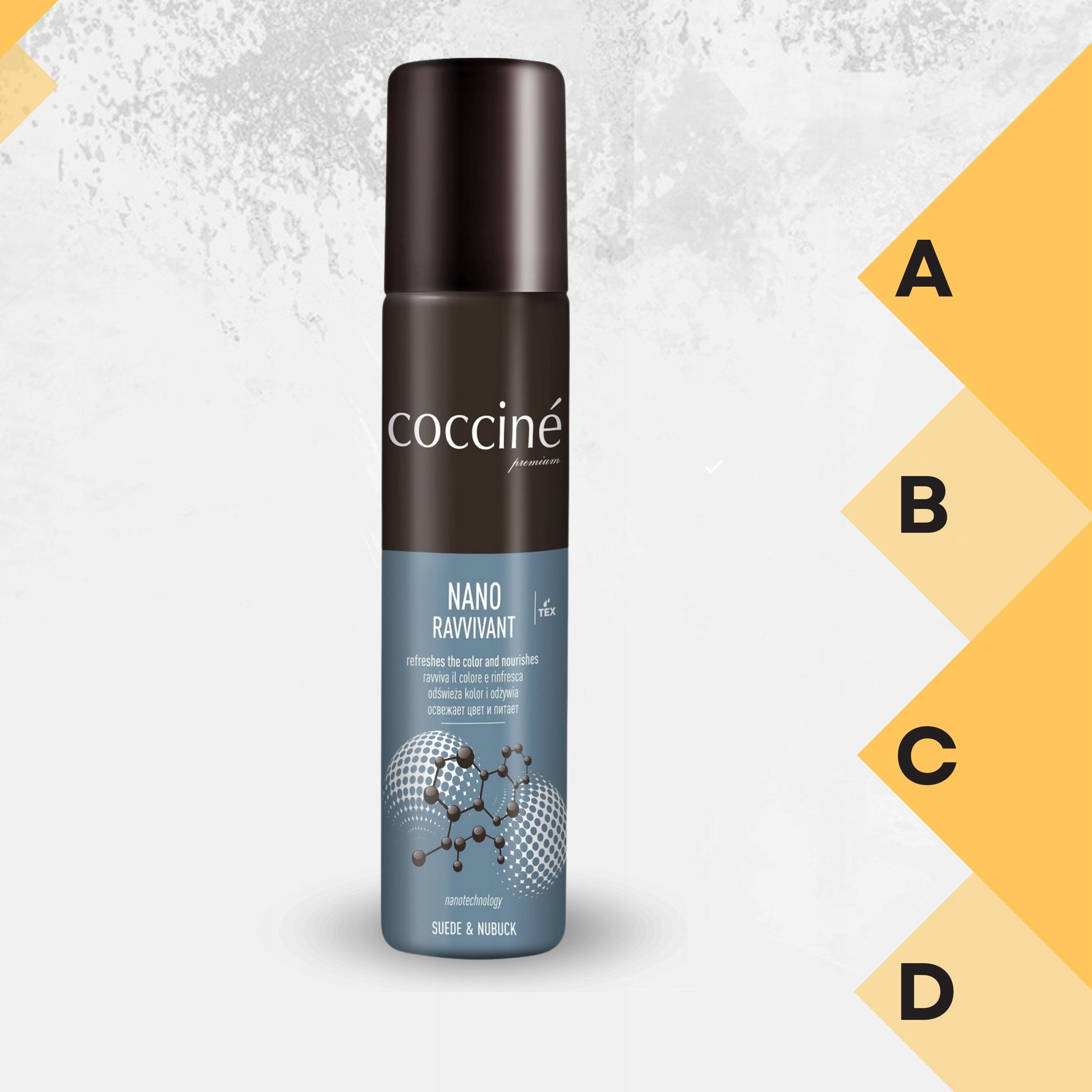 Spray-ul Coccine Ravvivant este o modalitate fiabila de a reinnoi culoarea si aspectul incaltamintei si accesoriilor din nubuc si piele intoarsa. Aceasta vopsea spray de inalta calitate combina eficient colorarea, ingrijirea si protectia. Alegeti un produs dovedit de la o marca reputata si redati-le pantofilor dumneavoastra gloria de odinioara!