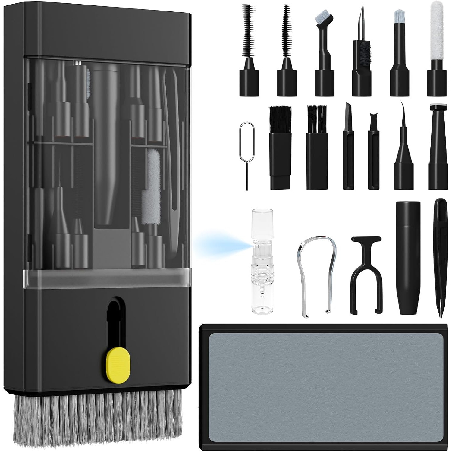 Kit de curatare multifunctional 22 in 1 pentru laptop, cu extractoare de taste, perii de curatare si carpe, dimensiuni compacte