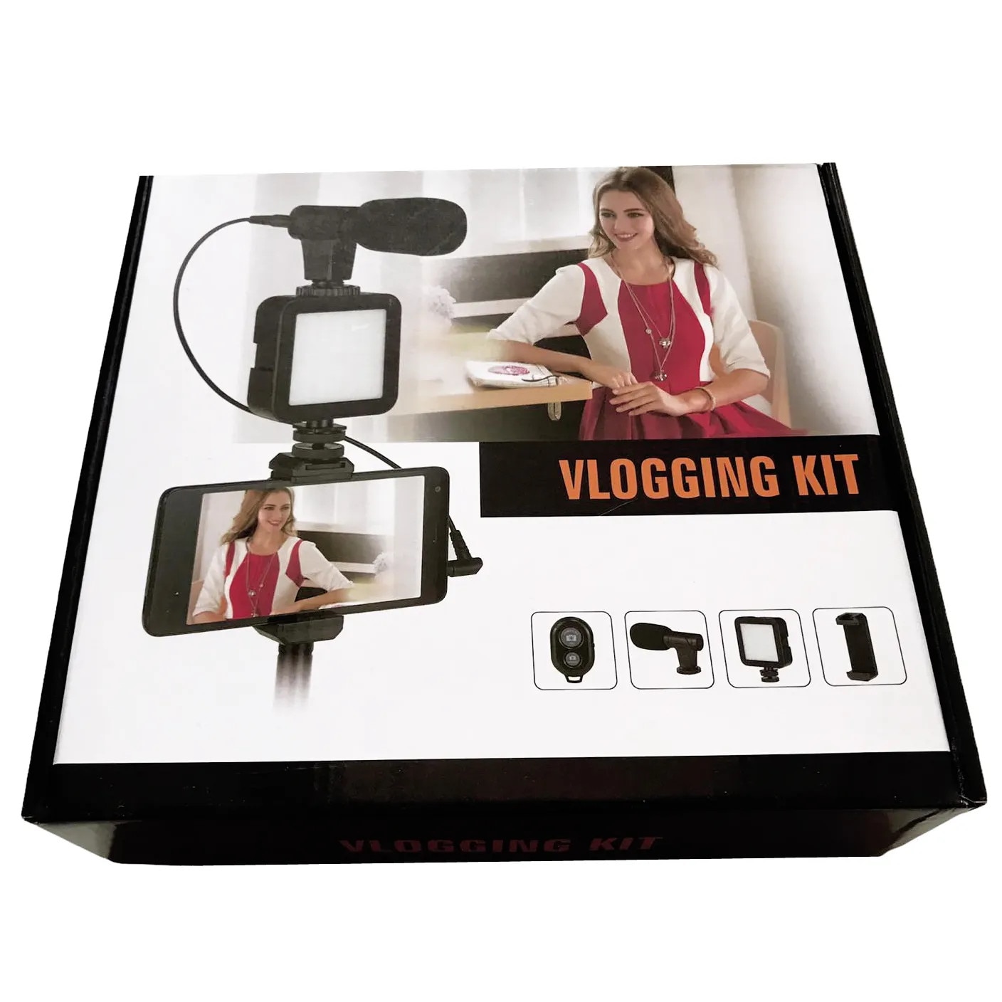 Kit de vlogging pentru filmari video Youtube, TikTok, cu trepied, microfon, panou LED, telecomanda bluetooth, suport reglabil telefon, compatibil cu aparat foto/smartphone